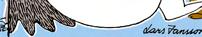 This volume collects the Moomin comics created by Lars Jansson, Tove’s brother. Lars had long been involved in the creation of the Moomin strips — he translated them into English for publication. Though he had little knowledge of drawing, Lars took over the daily comic strip. Tove taught him, and after two years of sibling collaboration, Lars authored the strips independently for fourteen years.