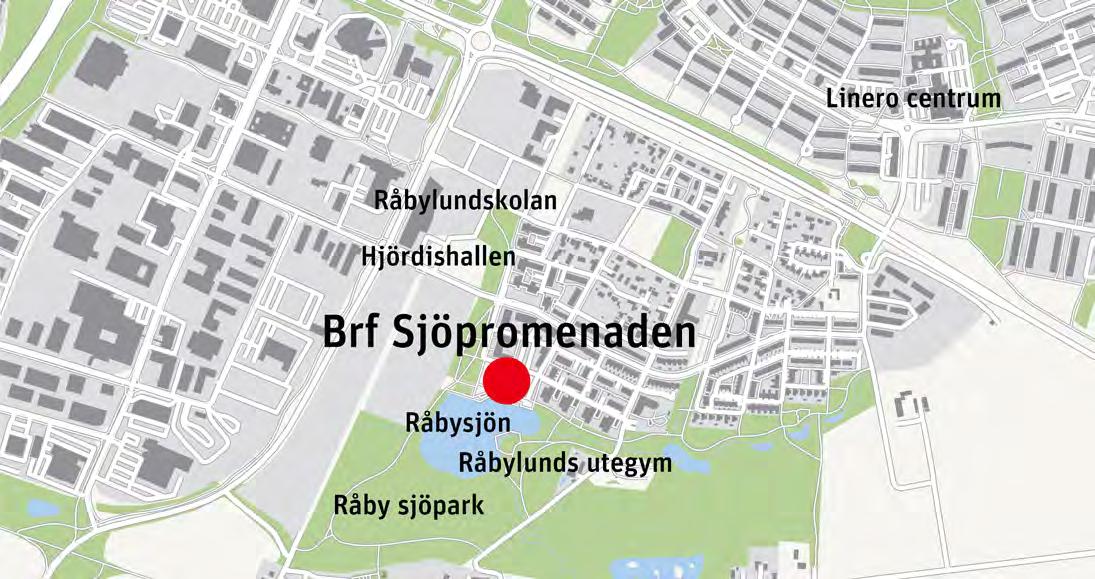 vill bo bekvämt i södra Råbylund. Södra Råbylund är en växande stadsdel och i framtiden finns goda möjligheter till en utvecklad närservice. Under hösten 2025 påbörjades byggnationen av en större livsmedelsbutik, bara några hundra meter från Brf Sjöpromenaden. På bekvämt cykelavstånd finns Linero centrum med bland annat en välsorterad livsmedelsbutik, bibliotek, pizzeria, apotek och vårdcentral. Men med bara några tramptag på cykel eller en kort tur med