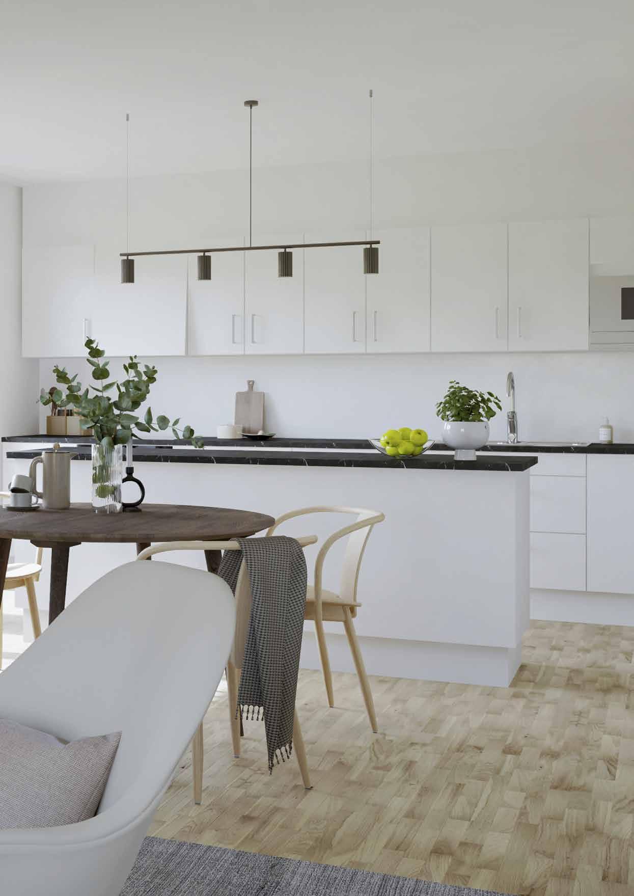 behöva ta en massa beslut om kakelplattor, luckor, bänkskivor och knoppar har vi inrett de olika våningsplanen med 3 olika inredningskoncept. Stilrent och genomtänkt, redan från början.