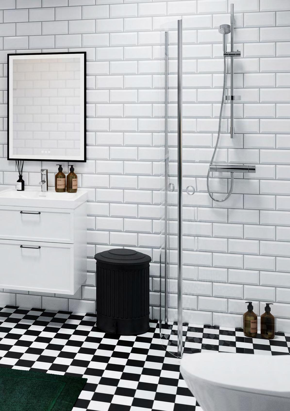 WC/Dusch: Skärmvägg rak dörr med blank aluminiumprofil, 973198, klarglas.