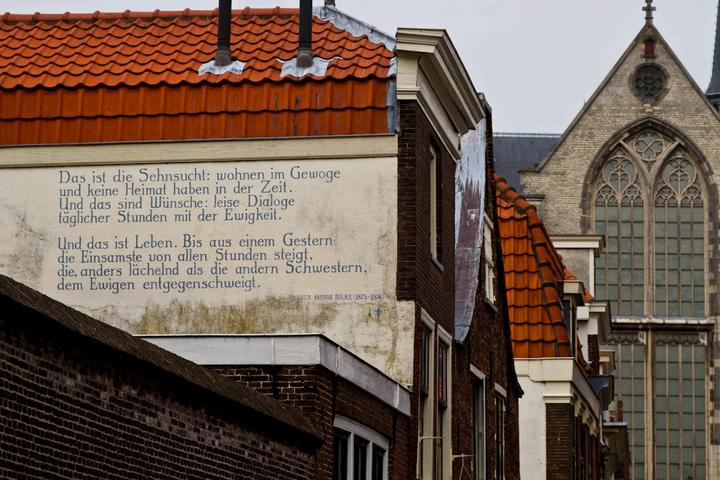 Als je goed oplet tijdens het wandelen door Leiden, zie je op allerlei plekken gedichten op de muren In het Nederlands, maar ook in talen als Japans, Arabisch of Russisch. Soms groot en opvallend, soms verstopt in een steegje. Ze maken van Leiden een openluchtbundel en geven je onderweg iets om over na te denken
