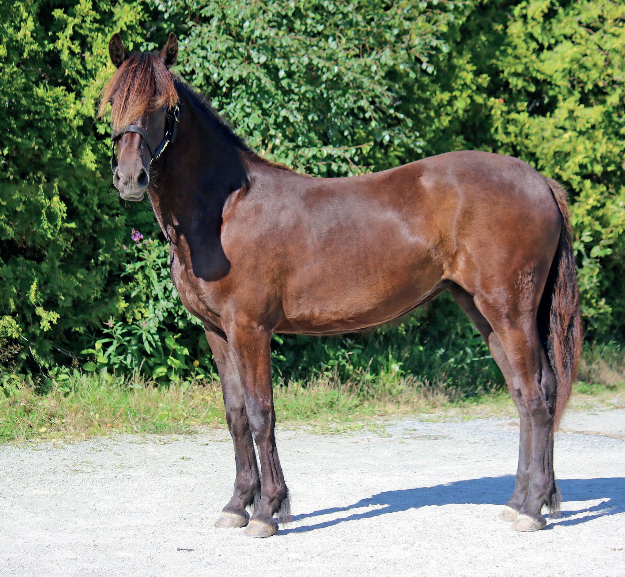 Innmelder:Tom Vestrheim & L.K. Johannessen, Hellandsv 53, 4150 Rennesøy. Tlf: 957 39 135, e-post:tev@jaeradvokatene.no Innmelder opplyser: Fin, rettstilt hoppe – tøff, men samtidig med et meget godt gemytt. Mye håndtert. Fulgt opp løpende med hov- og tannpleie. Fjernet liten beinbit høyre has.