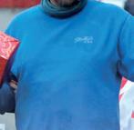 Blå m/grått sidefelt, krage, mansj + reklame.