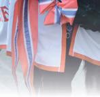Hvit m/rød, sort stolpe, ermer, krage og belte + rekl.