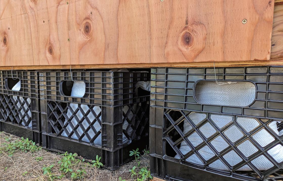 土のうがはいったビールケースを簡易的な基礎とする