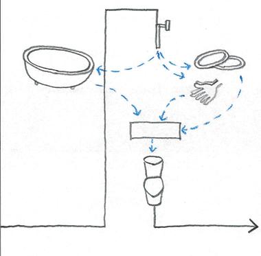 わたしたちの住む家にはたくさんの配/排水管や蛇口があ ります。水の流れはわたしたちの目にはつねにさらされず、 壁の中、あるいは床や天井の中に押し込まれています。毎 日の生活に欠かせない水の流れを、わたしたちは知りませ ん。