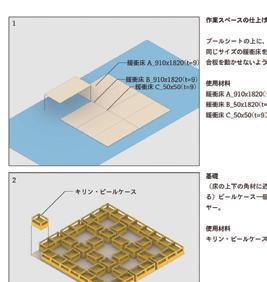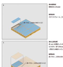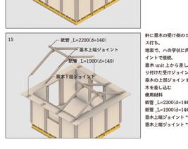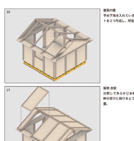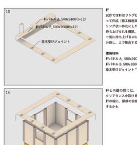作が行われ、15人ほどの人数が参加した。完成後構造実験などが行わ れたほか、2023年5月5日に発生した能登における地震の際に、これ らを解体して能登に輸送され、これが能登での仮設住宅建設の材料とし て再建設された。