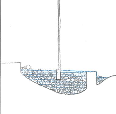 2階で溜めた水はスラブの中の浄水機へ流れたのち、同じく スラブの中にある中水タンクに溜まります。