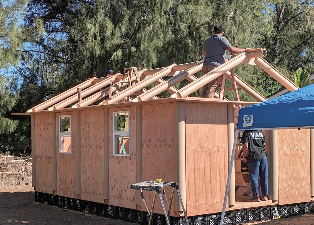 そして、2023年8月8日に生じたハワイマウイ島火災の支援活動とし てトルコ・シリア地震プロジェクトのメンバーがそこで得られた技量・ 知見を発揮するために被災地へ訪問し、3日でPaper Loghouseを建設 した。