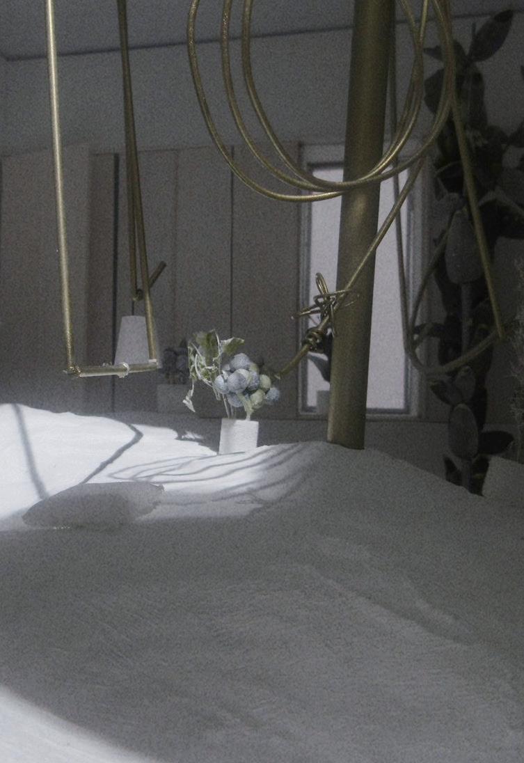 床とフックによって構成される空間の使い方は無限にある でしょう。住み手が能動的にふるまいに合わせて空間を作っ ていくのです。