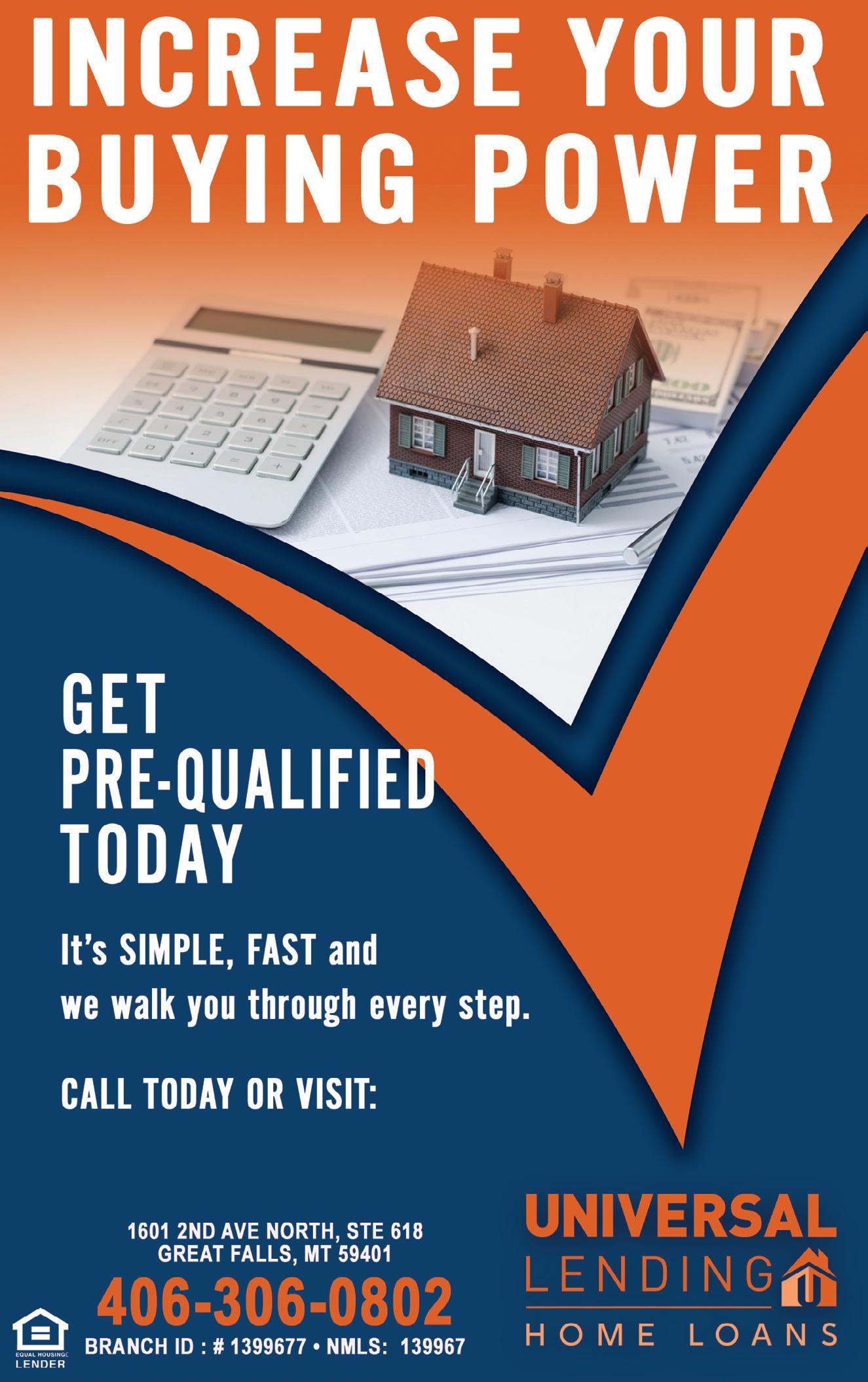 pg.8 www.CapitalRealEstateConnection.com WWW.MONTANALANDHOMES.COM & 30x40 shop. Nearly 8 irrigated acres of alfalfa. Winning features include large master suite, oversized bedrooms, walk out basement, NE facing deck, paved U driveway, mature landscaping, & New boiler in 2021. 5 minutes from Helena. Frequent deer & elk. $889,000 - MLS#22216323 6361 GREEN MEADOW DR - HELENA, MT On these 160 +/- acres there sits a seasonal cabin. Private, Mountains, Wildlife. You’ve got to see this place. $1,250,000 - MLS#22213687 216 CRAMER SPRINGS TRAIL - CLINTON, MT NEWLY COMPLETED HOME Located in the Wheat Ridge Estates. This home has 4 beds, 2 baths, & a 3 car garage located on 2 acres. Master en-suite bath has a tiled double shower. Fireplace in the great room. This open concept house is complete & ready for you to add your touch! Beautiful Views of the Elkhorns & Big Belt Mountains. Close to walking trails & hunting. You don’t want to pass this home up! $619,900 - MLS#22300524 2124 DRYLAND LOOP - E HELENA, MT $320,000-$400,000 HELMVILLE TRACTS - HELMVILLE, MT $640,000-$3,995,000 BULL ELK TRACTS - DRUMMOND, MT Come check out this Beautiful lot that overlooks the Helena area. Sanitary restrictions have been lifted. This lot is ready for you to build your dream home. $225,000 - MLS#22216001 TBD BUFFALO HORN DRIVE - HELENA, MT NEWLY COMPLETED HOME located in Wheat Ridge Estates. 4 beds, 2 baths & 3 car garage located on 2 acres. Master en-suite bath has tiled double shower. Fireplace in great room. Open concept house ready for you to add your touch! Beautiful Views of the Elkhorns & Big Belt Mountains. Fifteen minutes from Canyon Ferry Lake. Close to trails & hunting. Don’t pass this home up! $579,900 - MLS#22300325 2285 SPRING WHEAT LP - E HELENA, MT NEWLISTING! NEWLISTING!