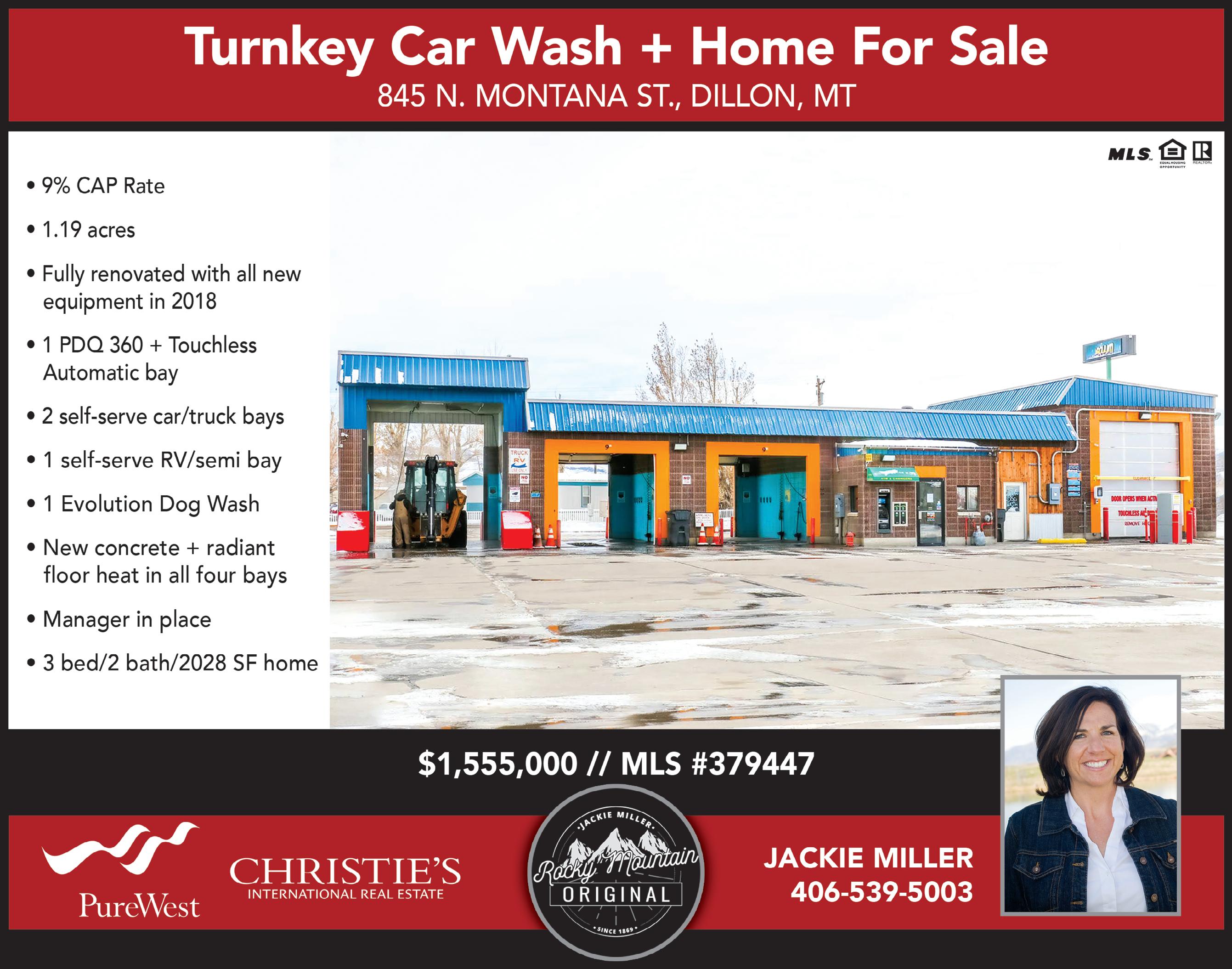 escalator of 2.75%. 3-5 year lease term. 1409 BIRCH STREET • HELENA, MT A 6,000 sqft building on a 12,500 sqft lot. It has a large parking area around the building. It is currently being leased by CED & has been leased by them for over 25 years. Lease expires June 30, 2024 w/a 5-year renewal option. $900,000 - MLS#22215036 1201 CEDAR STREET • HELENA, MT WOODY’S CAR WASH is a long-established business having been owned by the current owners for 28 years. The automatic car wash sits on .51 ac on the busiest corner in Helena at Cedar Street & N. Montana. Very good long-term annual income that has remained strong throughout the years. $2,500,000 - MLS#22212473