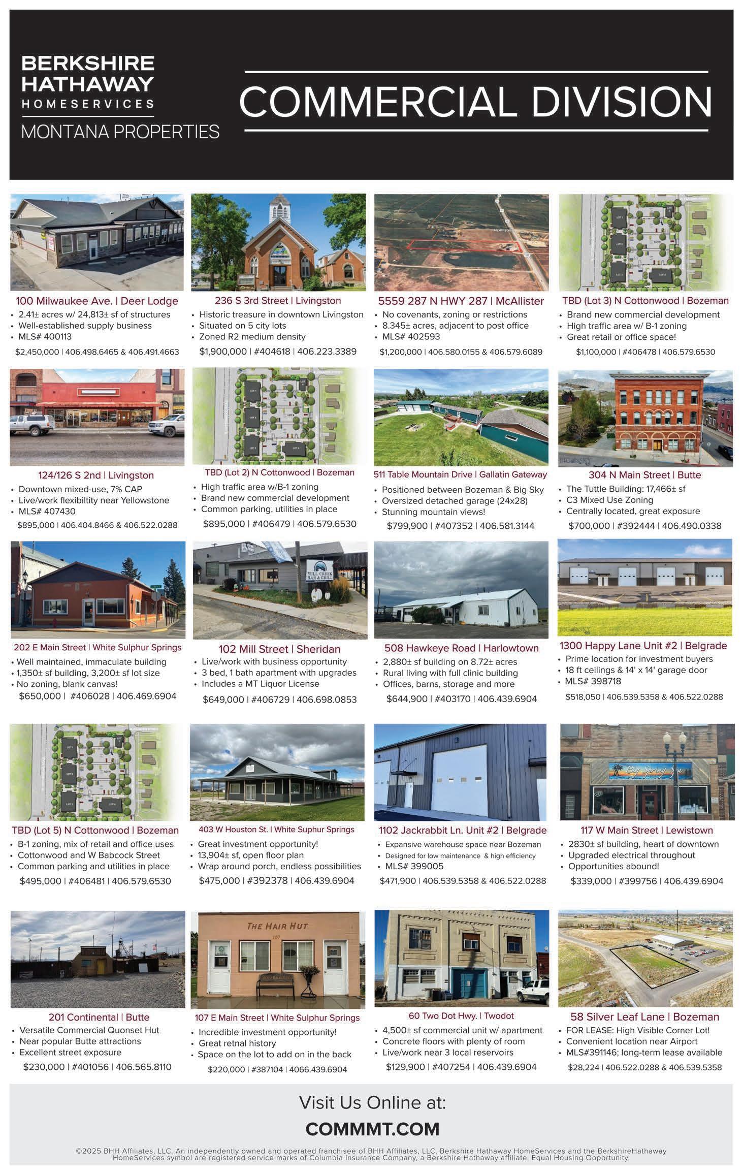 Excellent opportunity to own a 9,600sf warehouse sitting on 4.6 acres & directly off I-90! This warehouse offers endless uses. No covenants. This property is ideal for just about anything you can think of. It offers 1,200 amps of 3 phase power in the building & a total of 3200 amps between the joint property. The building is a very well constructed steel building sitting on 10” foundation & polyurethane foam insulation. Very well insulated & offers temperature controlled rooms. A room w/ a safe door is also included. Septic, Natural Gas & a well are all in place. This property has beautiful views & great accessibility. The joining property to the east, MLS#406328, is 4.1 acres w/ a well, also available w/ this purchase. Bring your ideas! Do Not miss out on this property! $3,300,000 | MLS#406327