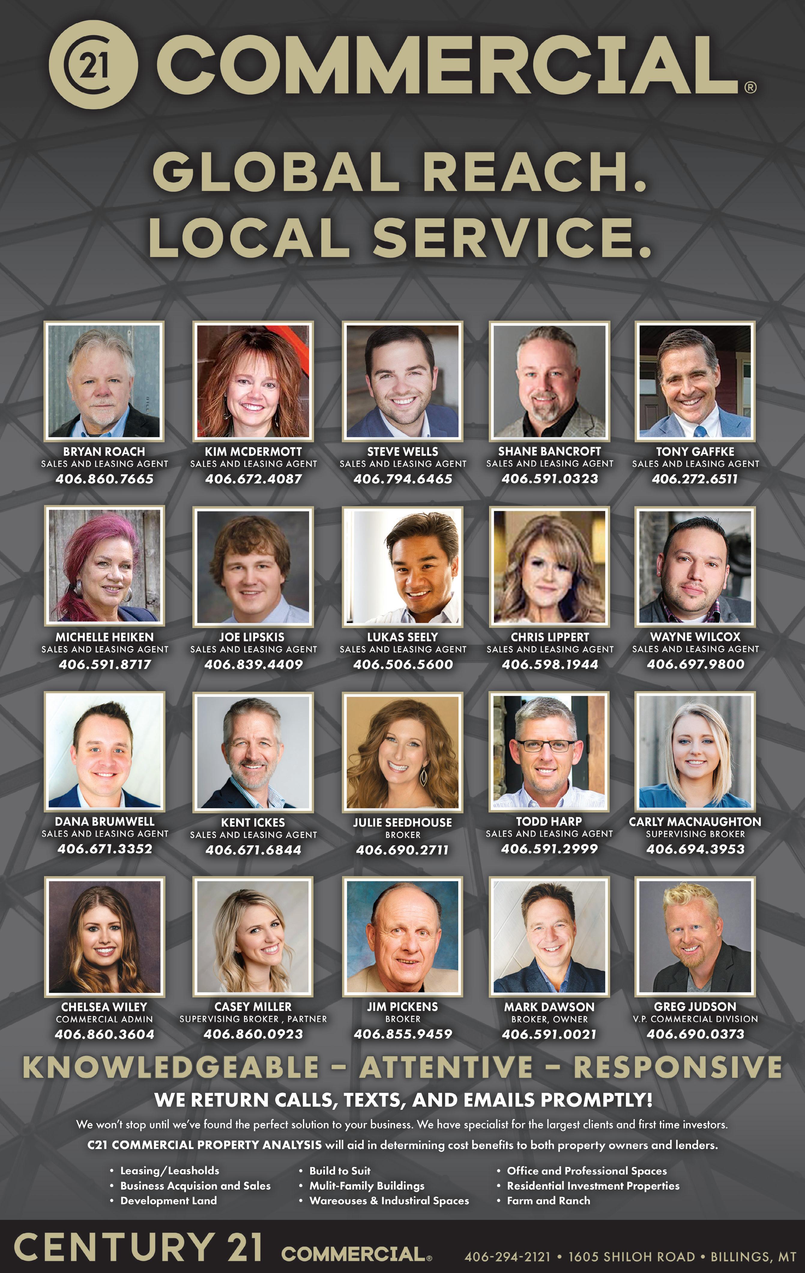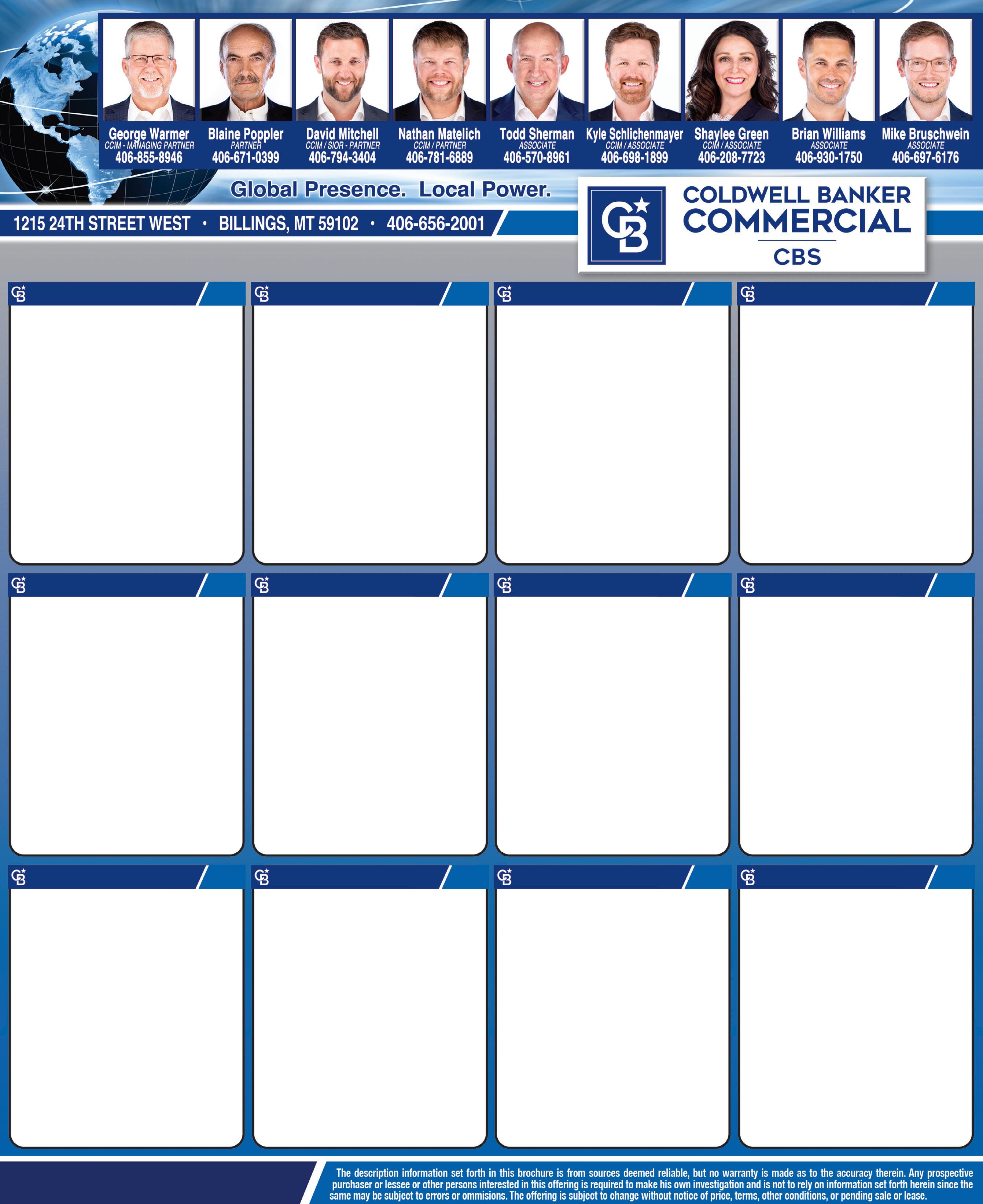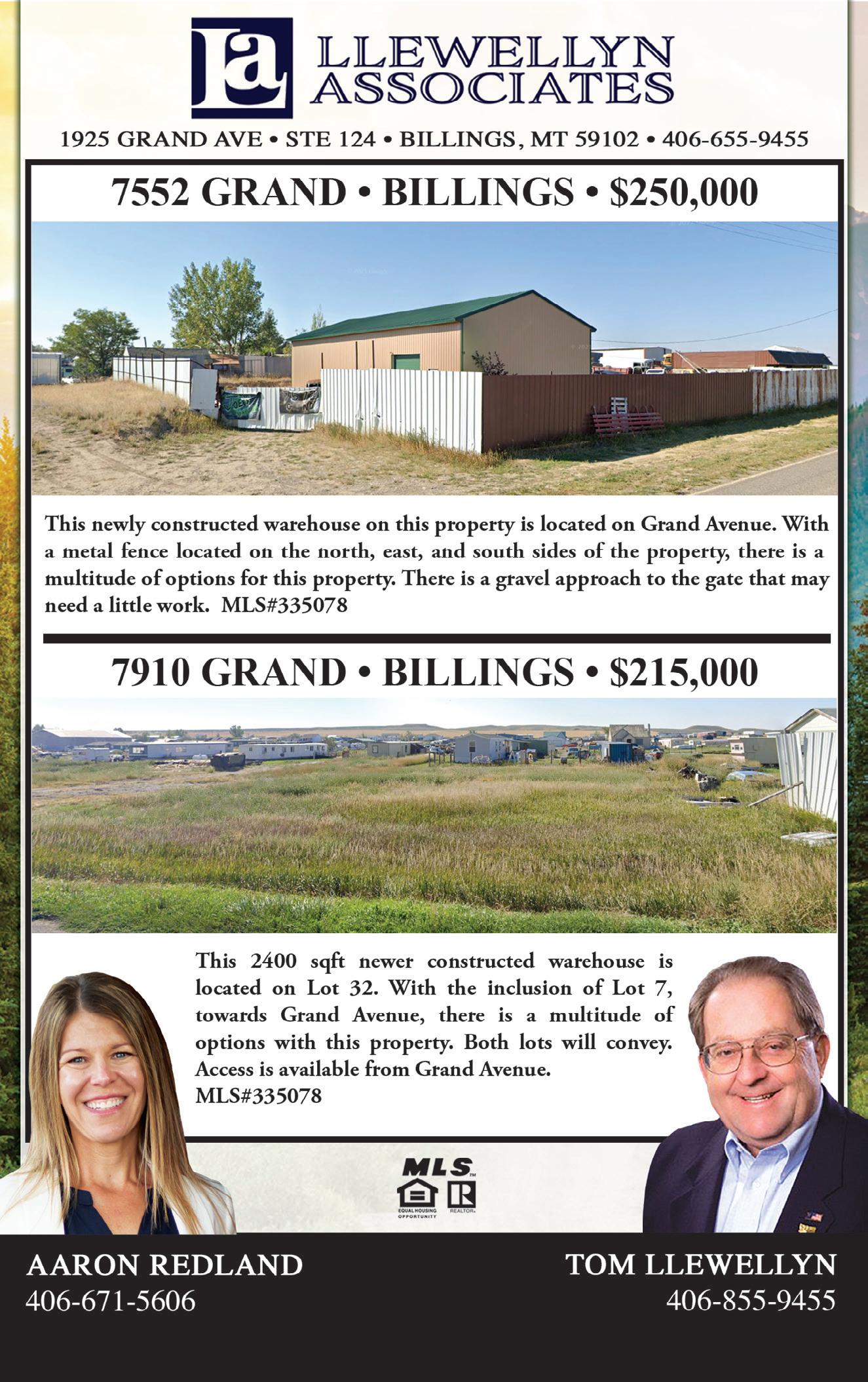 EASTERN MONTANA edition WESTERN & CENTRAL EDITION ONLINE VISITUSONLINE: www .M ontana C o MM er C ial r eal e state C o M OWNED & PRODUCED BY: RIM ADVERTISING, INC. • 406-656-0608 • WWW.RIMADVERTISING.COM NOVEMBER / DECEMBER 2022 VOLUME 24 NUMBER 6 PRSRT STD U.S. POSTAGE PAID BILLINGS MT PERMIT NO.749 www.CBCMontana.com NEW LISTINGS FOR SALE OR FOR LEASE! 2075 OVERLAND AVENUE • BILLINGS, MT FOR SALE: OVERLAND BUILDING: $5,695,000 • PEACHTREE BUILDING: $4,995,000 FOR LEASE $14-$16 SF NNN • 5,000 - 40,000 SF available. George Warmer 406-855-8946 • Nathan Matelich 406-781-6889 NEW LISTING! VIRTUAL TOUR: OVERLAND BUILDING https://tinyurl.com/e6amdczu VIRTUAL TOUR: PEACHTREE BUILDING https://tinyurl.com/e6amdczu NEW LISTING! NEW LISTING! NEW LISTING! NEW LISTING! NEW LISTING! NEW LISTING! NEW LISTING! NEW LISTING! NEW LISTING! P R I C E D R O P Lorem ipsum 1643 24TH STREET WEST • BILLINGS, MT FOR LEASE $2,535/MO + UTILITIES 2,102 SF office with reception and kitchenette Nathan Matelich 406-781-6889 403 BOULDER ST • BIG TIMBER MT FOR SALE $240,000 Restaurant/Retail Opportunity on desirable corner w/increasing exposure. Brian Williams 406-930-1750 201 MAIN STREET • ROUNDUP, MT FOR SALE $114,000 5,700 SF Building primed for restoration. Mike Bruschwein 406-697-6176 EMBER AND INDIGO LUXURY GLAMPING BUSINESS FOR SALE $55,000 Website, FF&E, cargo trailer and more. Shaylee Green 406-208-7723 INSPECTION BUSINESS SALE $80,000 Well established home inspection business with strong franchise support Brian Williams 406-930-1750 SALON/TANNING BUSINESS FOR SALE $189,000 Great location, revenue, and attractive lease rate. Shaylee Green 406-208-7723 BIG SKY BEAUTY SUPPLY & SALON FOR SALE $110,000 Well established business with all FF&E and inventory included Mike Bruschwein 406-697-6176 3D TOUR: ttps://tinyurl.com/3ybb4hva 423 KUHLMAN DRIVE • BILLINGS, MT FOR SALE $575,000 2,250 SF Home and 2,588 SF Shop Zoned Heavy Commercial Brian Williams 406-930-1750 716 WAGON TRAIL W • BILLINGS, MT FOR LEASE $2,405/MO 2 units avail., 2,400 SF shop w/486 SF Mezzanine, office space & ADA Restroom, available in 2023. George Warmer 406-855-8946 INTERNATIONALLY RECOGNIZED PERFORMANCE AUTO COMPANY FOR SALE $864,735 Inventory and FF&E included Nathan Matelich 406-781-6889