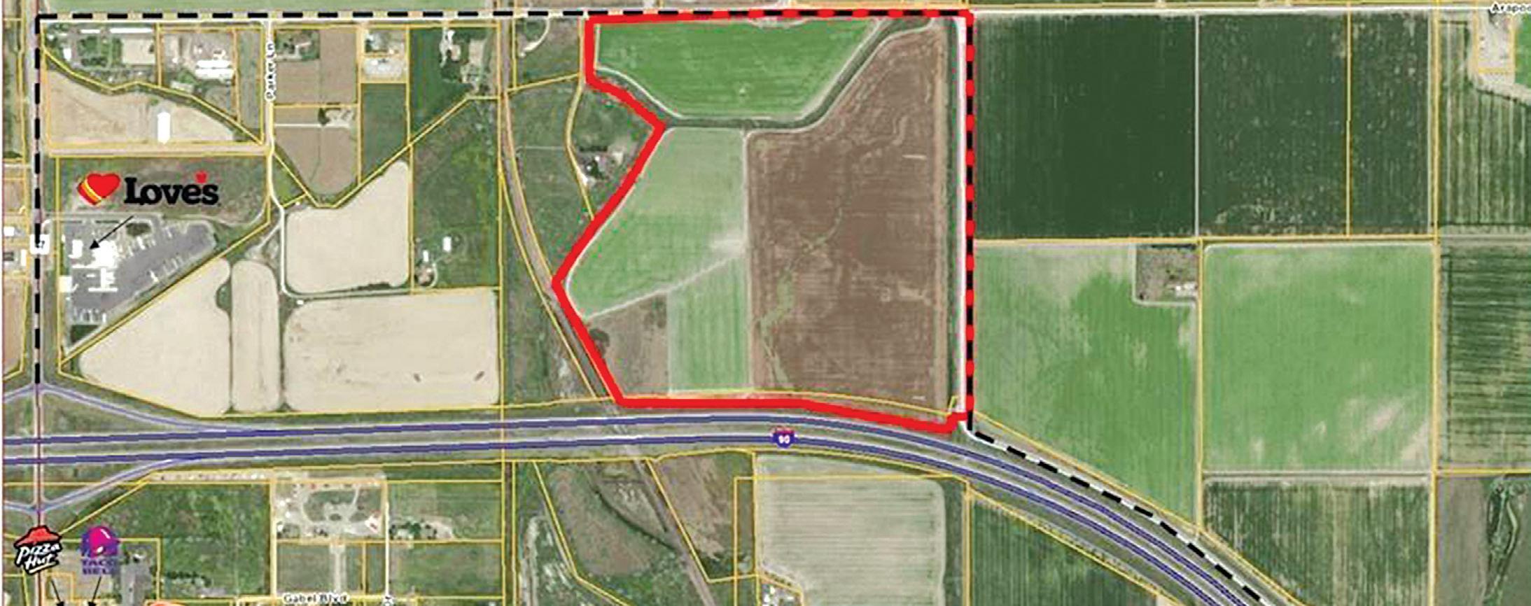 Various development opportunities with these 163 acres. Property is currently leased for farming and also used for grazing crops to be retained by lessee. Ponds at south end of property. Ditch rights in Cove Ditch #TBD. Call agent for viewing and details.