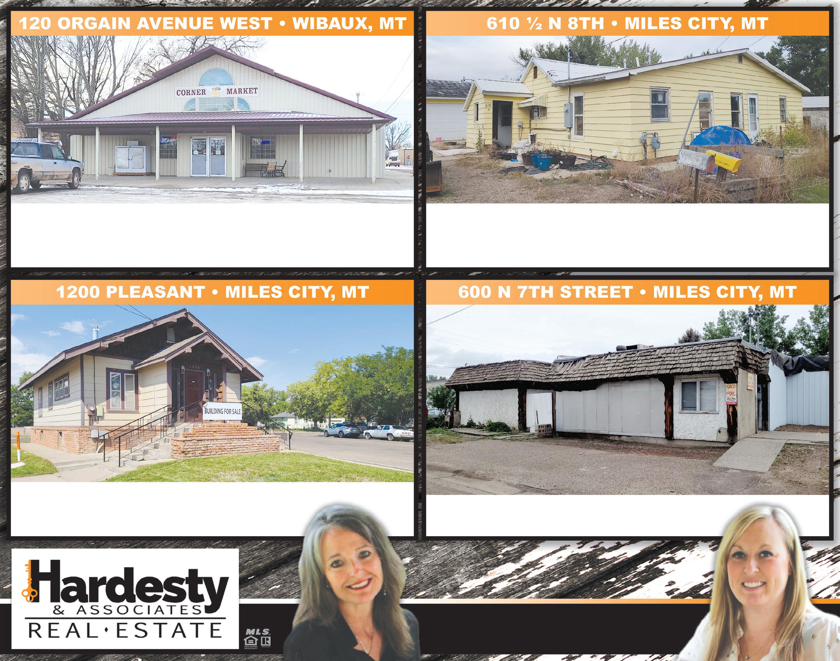 local wireless phone (upon request) & Cable TV/HBO on a flat screen TV to stay connected w/the world & exceptional customer service. $720,000 - MLS#340465 9 S MAIN STREET - BAKER, MT Here is your opportunity to own a long term established sports bar. Step back in time Baker, Heisers Bar has been a family owned & operated business, located on Main St in Baker, since 1933. A favorite of locals & out of towners alike, the bar is known for its friendly environment & fresh salad & pizza bar. $1,800,000 - MLS#341565 420, 422 WATER AVE - COLSTRIP, MT Start your next business today. There are 2 buildings, presently used as a Veterinary Clinic. The first building is complete with a waiting room and multiple smaller rooms. Great for an office. The other is a warehouse, with lots of possibilities. No inventory or equipment comes with the purchase of the buildings. $315,000 - MLS#342205 13 N 10TH STREETMILES CITY, MT Investors! Check out this 5 bedroom apartment building located just one block off of Main Street in Miles City, Montana. Excellent occupancy rate. Property is being sold as is. $140,900 - MLS#340630 4 S MAIN STREET - BAKER, MT Self-service pristine 3,000 sqft commercial laundry facility in downtown Baker, MT. Built in 2010, it adheres to current building codes & houses equipment that is in excellent condition. This equipment includes Speed Queen washers & dryers, starching/pressing machines, folding tables, coin change machines, a vending machine for laundering supplies, water dispenser station, & much more. $500,000 - MLS#341237 PENDING! DAWN BOLEJACK 406-951-7517 AMBER RAINEY 406-853-4257 This is your chance to purchase a turn key, local grocery store in Wibaux, MT. This business is well established & ready for a new owner! Operating as a full-service grocer, it is complete w/a meat cutting area & 8x12 meat freezer, fresh produce department, dry goods, frozen foods as well as a cold beverage & beer section. Attached is a 30x60 loading/storage bay w/a 12 ft overhead door. Purchase includes all fixtures & inventory. $649,900 - MLS#341598 Own a whole block! This commercial building sits on its own unique triangle lot. Located just off Main St. in downtown Miles City, this property has been surveyed out of the flood zone & has so much potential! Could be used as office space or retail. The basement is set up as a studio w/a bath & kitchen. Many updates throughout minding the original charm of the building. $150,000- MLS#341192 Use this property for your business! Plenty of space to build! This property is out of the flood zone. The home is ready for a new owner to bring it back to life. Home has new electrical service. The property also includes a 2 car garage. $159,900 - MLS#342191 Commercial building for sale. This building does have office spaces, Walk in Freezer & cooler. A kitchen washroom, a processing room & 2 restrooms. $70,000- MLS#342044