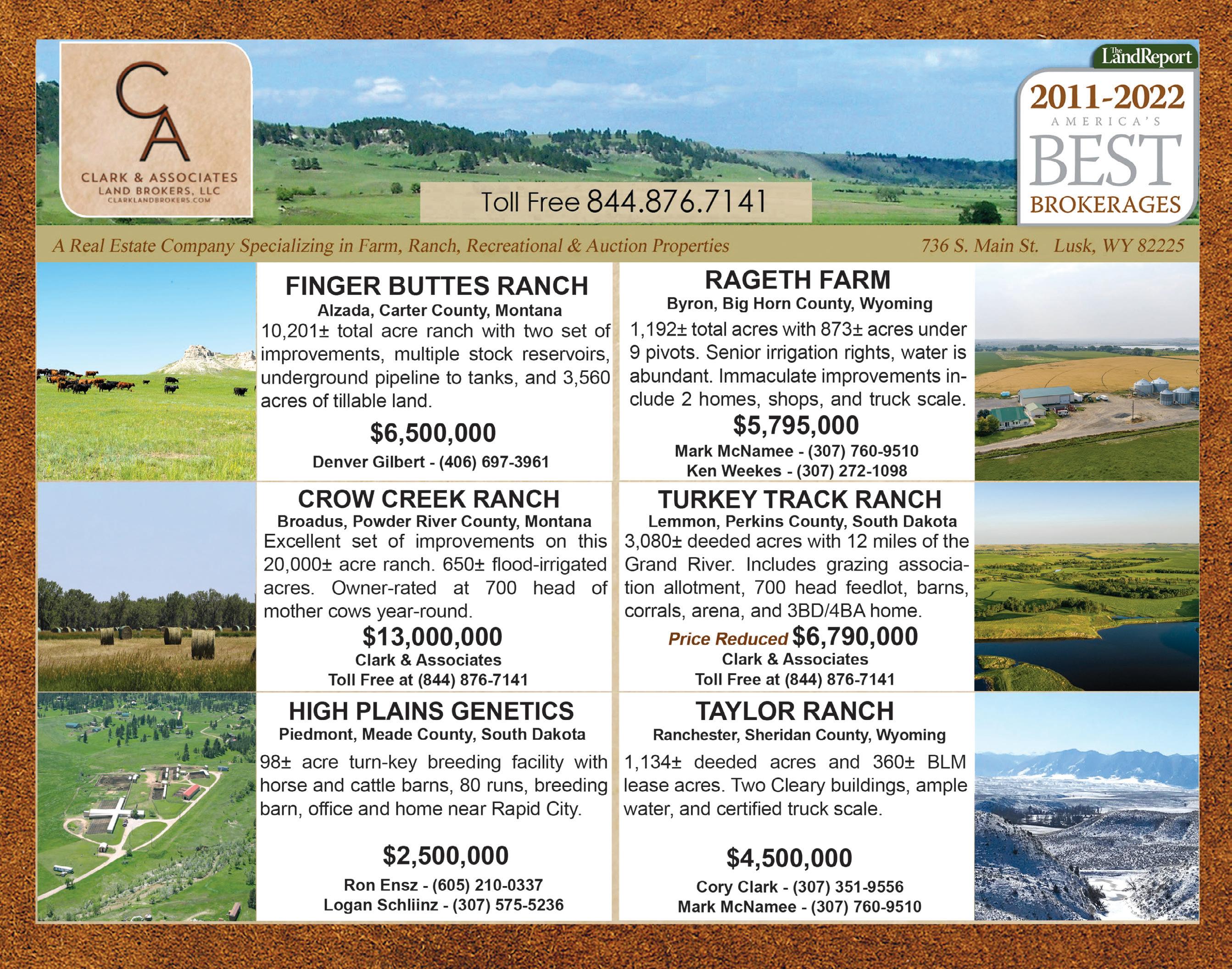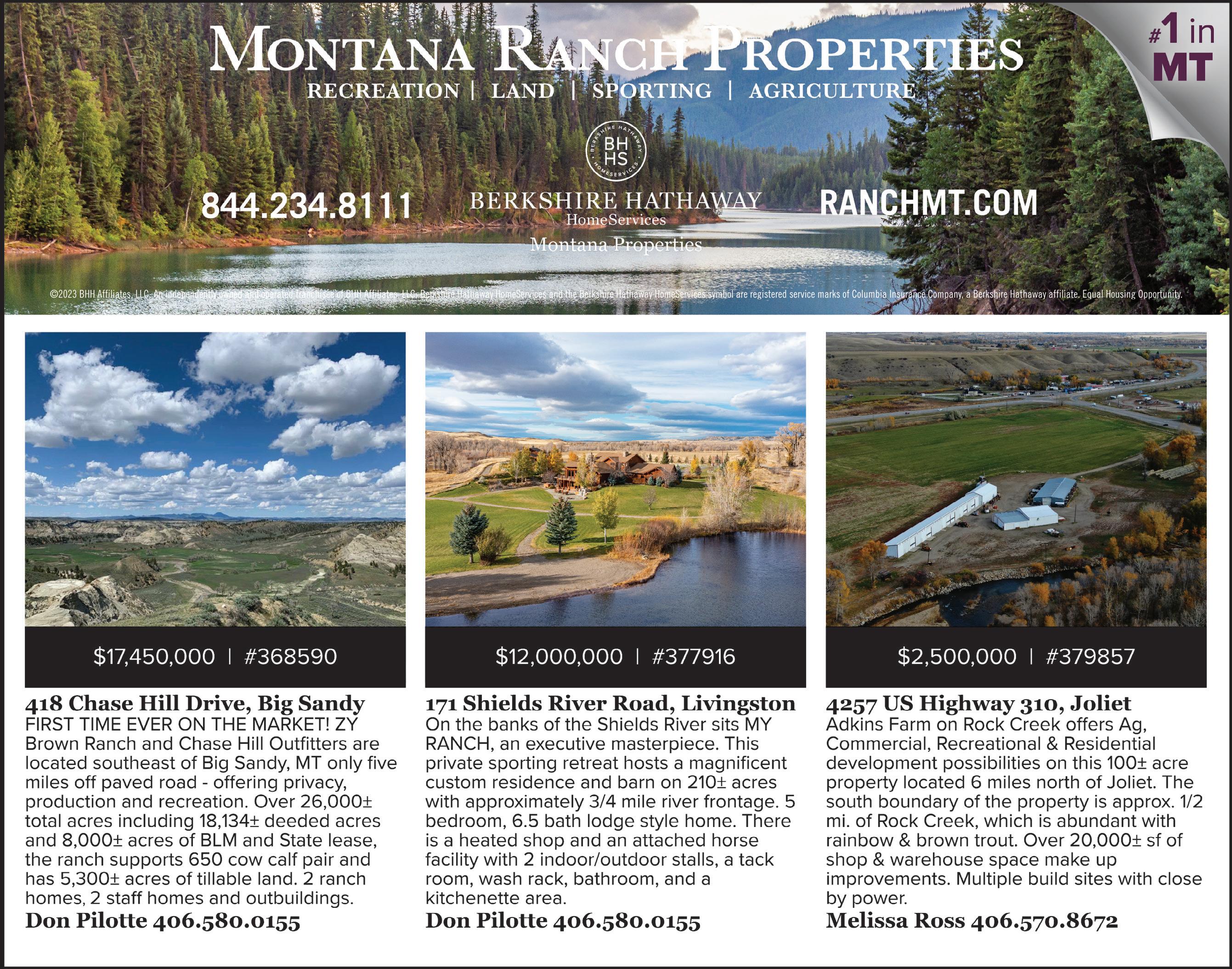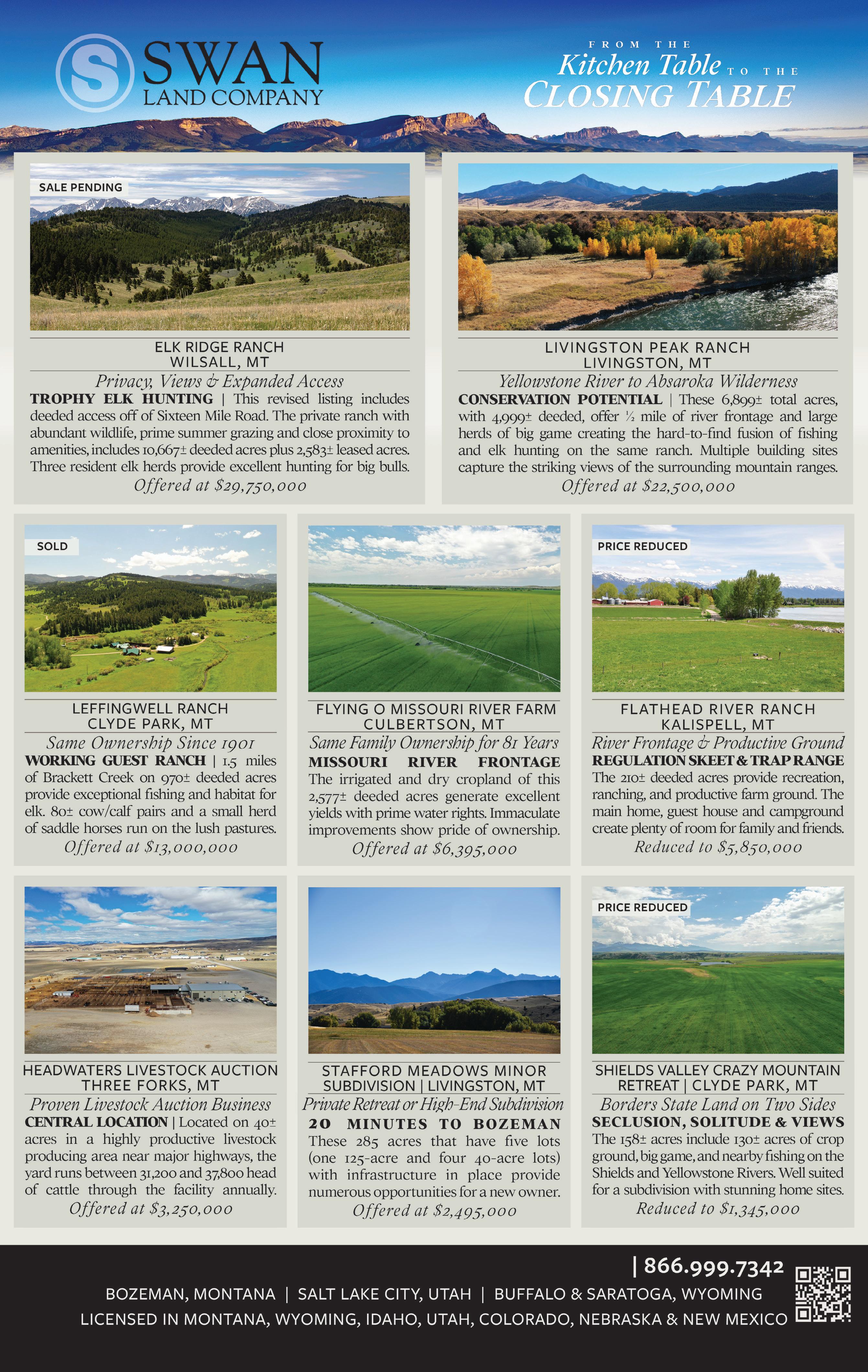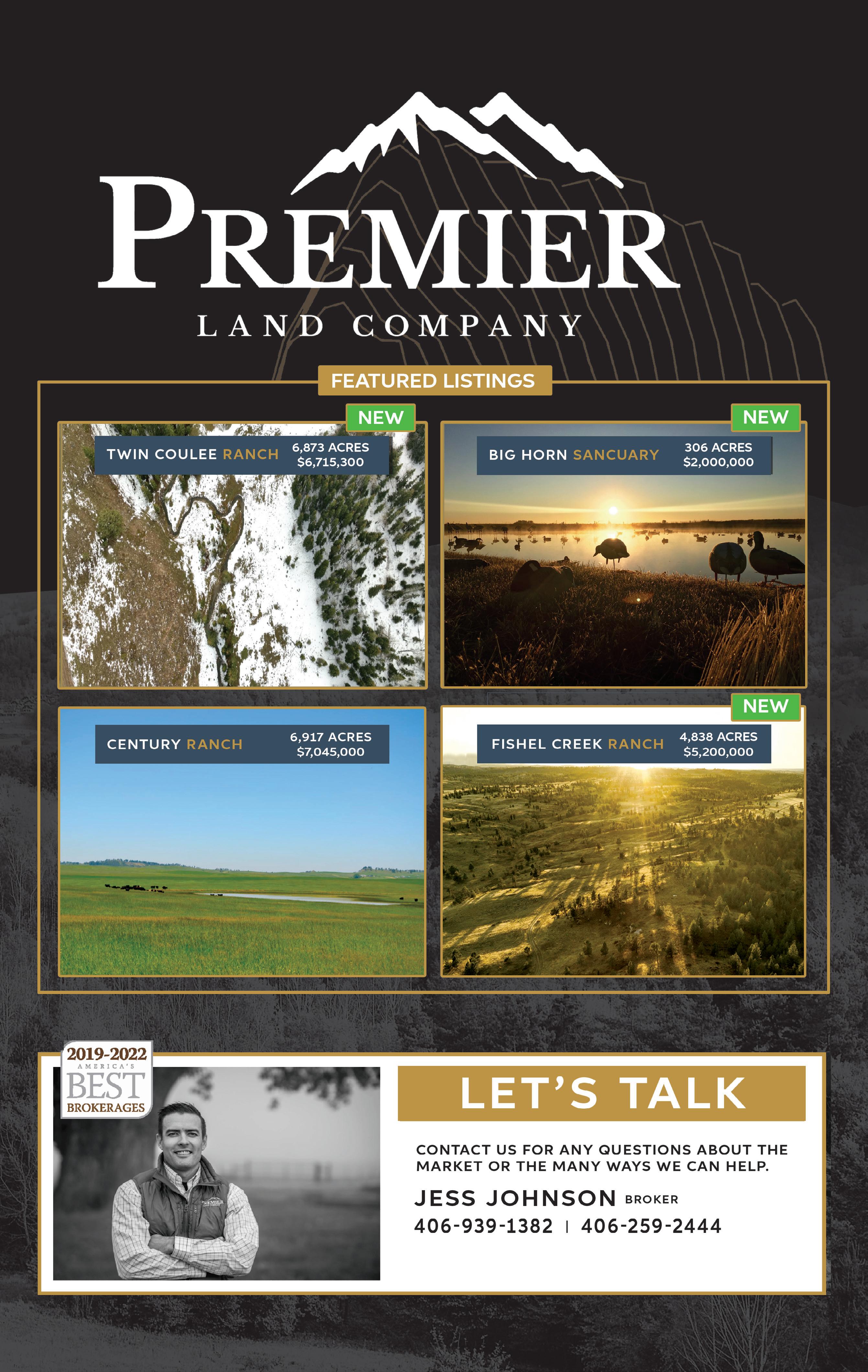 www.MontanaFarmsandRanches.com FEBRUARY/MARCH 2023 VOL. 14 - NO. 1 WWW.SWANLANDCO.COM | INFO@SWANLANDCO.COM WWW.POWERSLANDBROKERAGE.COM | INFO@POWERSLANDBROKERAGE.COM