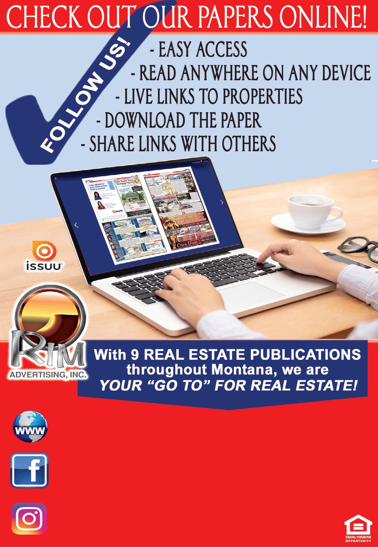 CHECK OUR OUR WEBSITE: www.BillingsRealEstate.org LIKE OUR PAGE: www.Facebook.com/WeeklyRealEstatePortfolio LIKE OUR GROUP: www.Facebook.com/groups/ montanaforsale LIKE OUR PAGE: www.instagram.com/rimadvertising