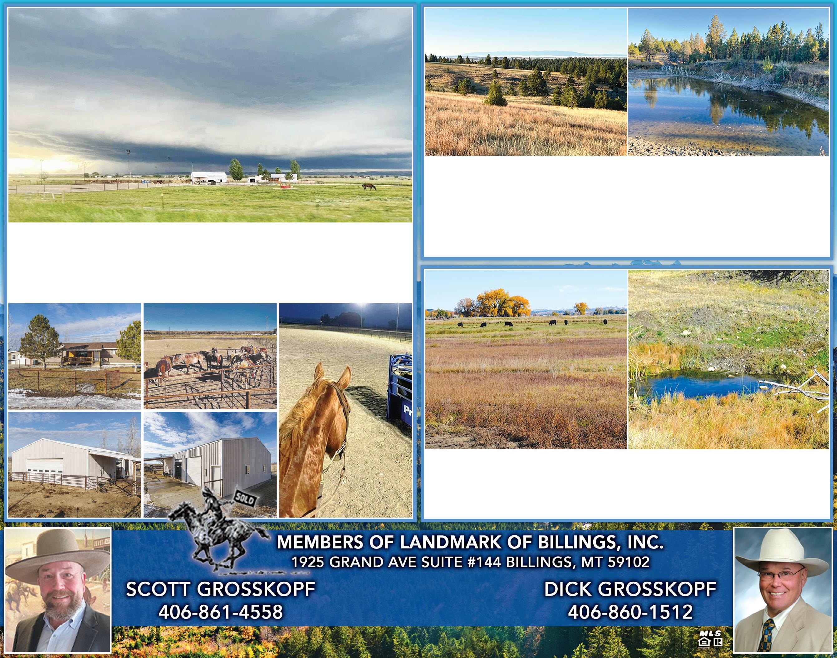 Best Buy in Yellowstone County, this 55 ac irrigated farm has a 3,500 sqft home w/4 beds, 2 1/2 baths & an over sized garage. Improvements include an additional well & septic for your RV or mobile hook-up, loafing sheds, calving barn & huge hay-machinery shed. $850,000