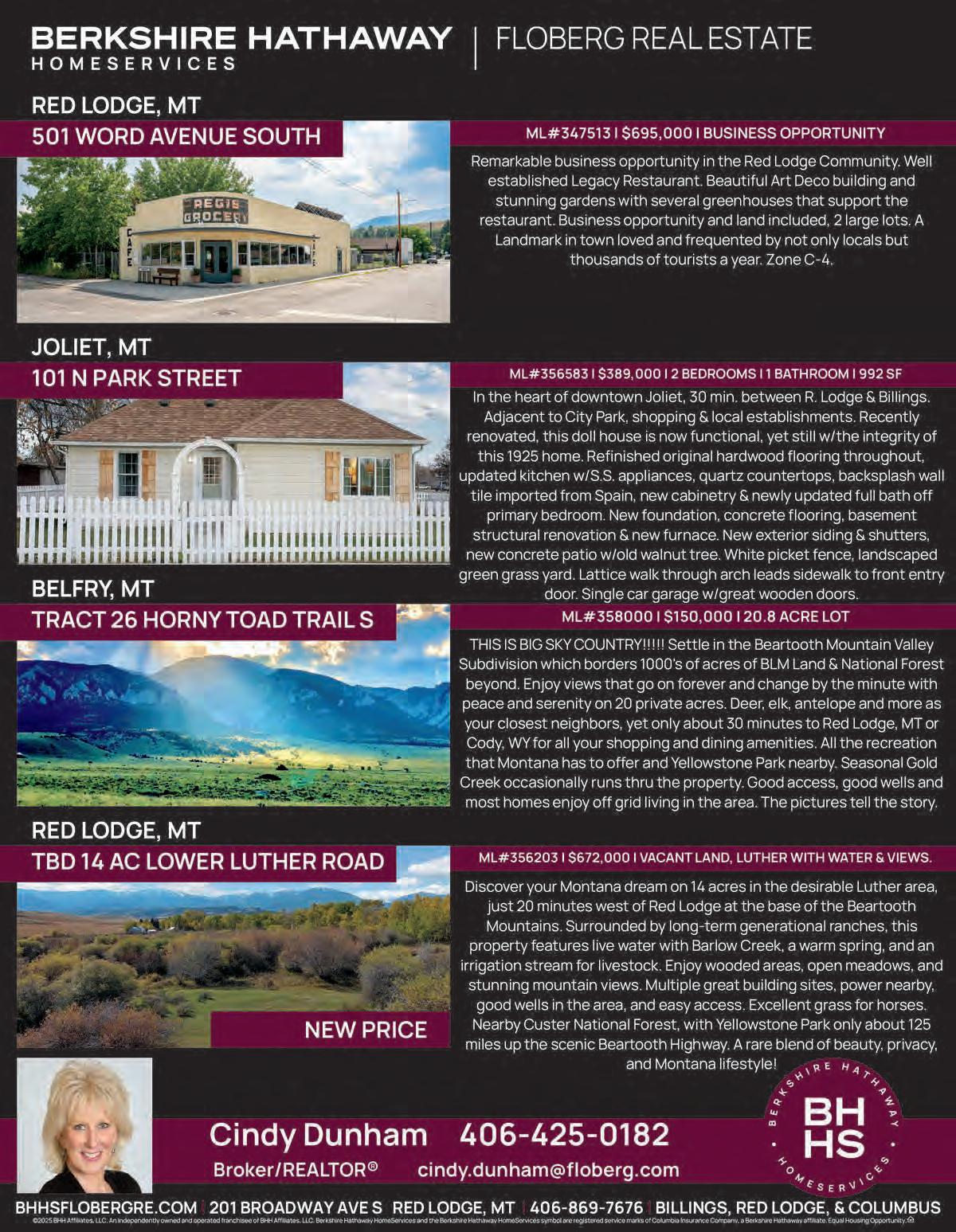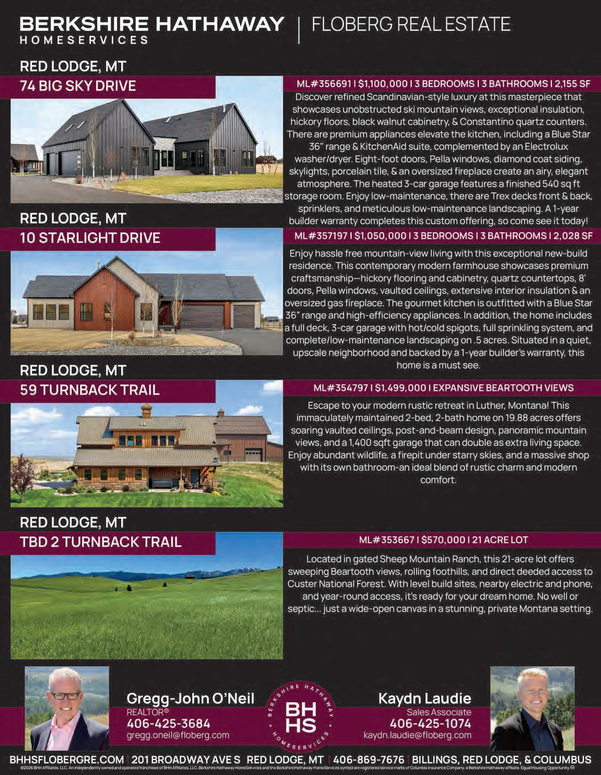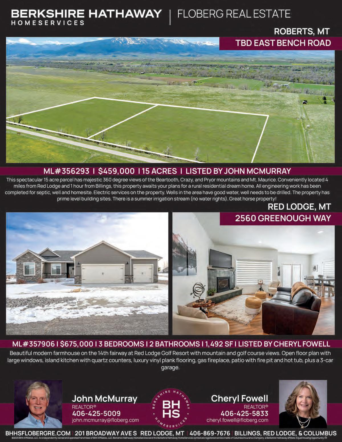 201 Broadway Avenue S • PO Box 372 • Red Lodge, MT 59068 406-869-7676 • www.BHHSFlobergRE.com