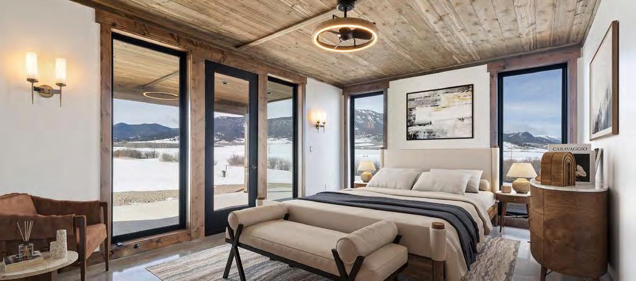 This exceptional luxury modern residence is designed with unobstructed Beartooth Mountain views from both inside and out. Chef’s kitchen: GE Cafe’ stainless steel appliances, anchored by a sculptural leathered Cygnus granite island. Luxury LVP flooring, soaring 12’ great room, and 8’ interior & glass sliding doors. Great room highlights a 54” Xtrordinair linear gas fireplace wrapped in steel & a media wall. Master Suite w/ vaulted ceiling, outdoor access, spa-inspired bath: a soaking tub, custom tiled shower, granite bench & dual shower heads. Office off the master. Large covered front porch, Trex decking, a partially covered concrete back patio, w/gas outlet.