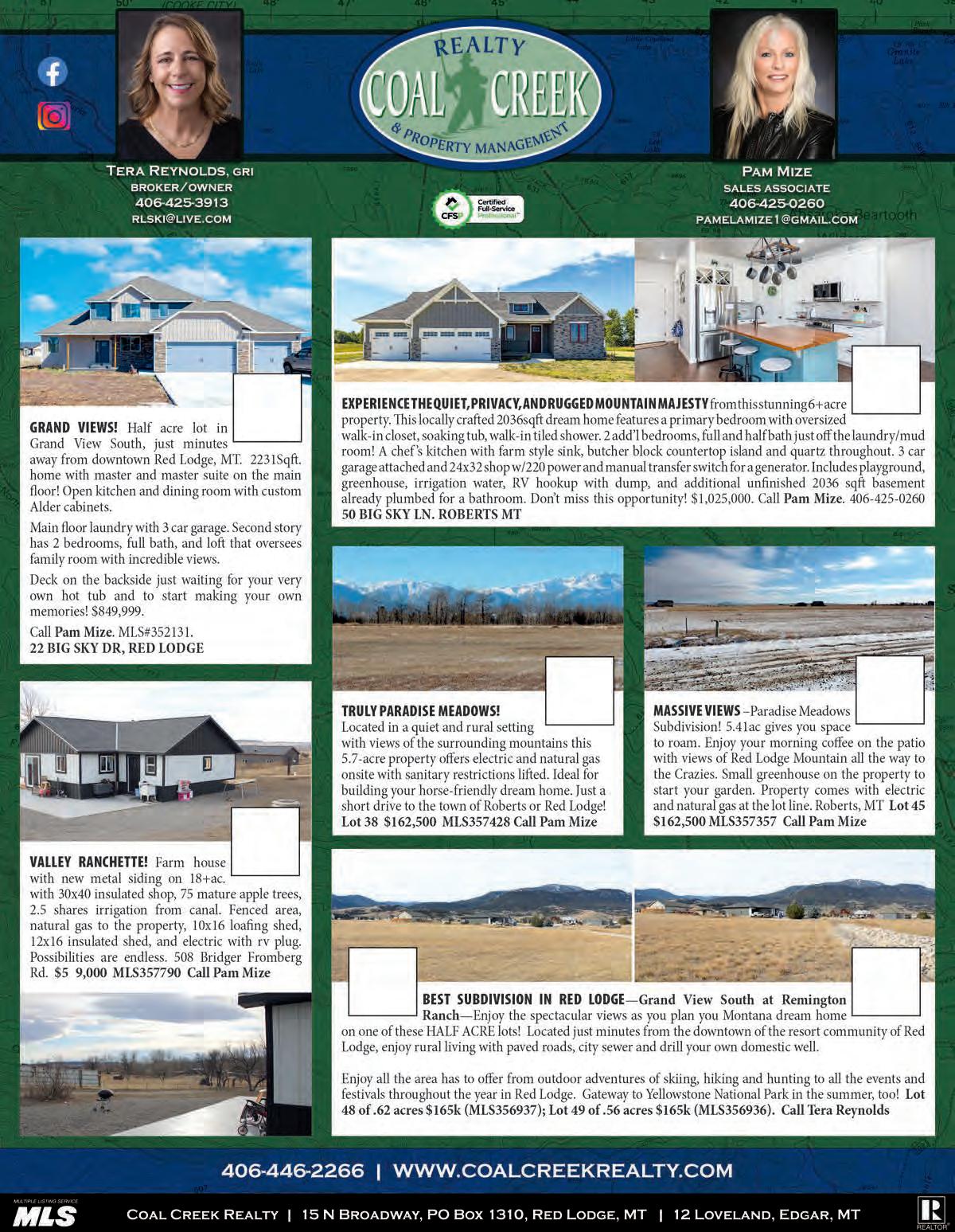15 Broadway Ave N • PO Box 1310 • Red Lodge, MT 59068 406-446-2266 • www.CoalCreekRealty.com