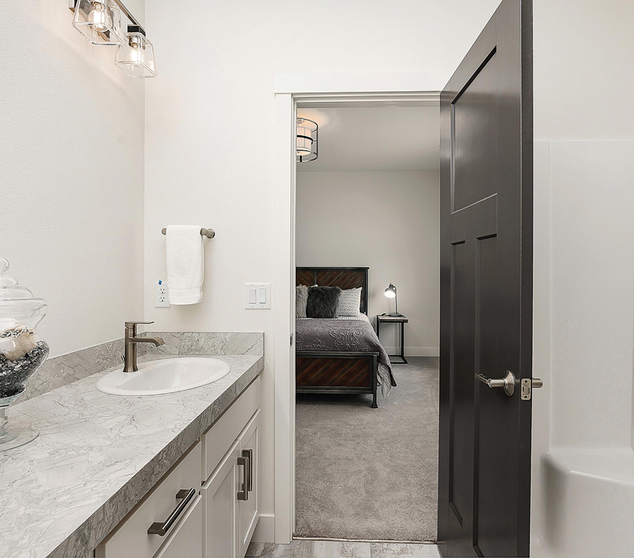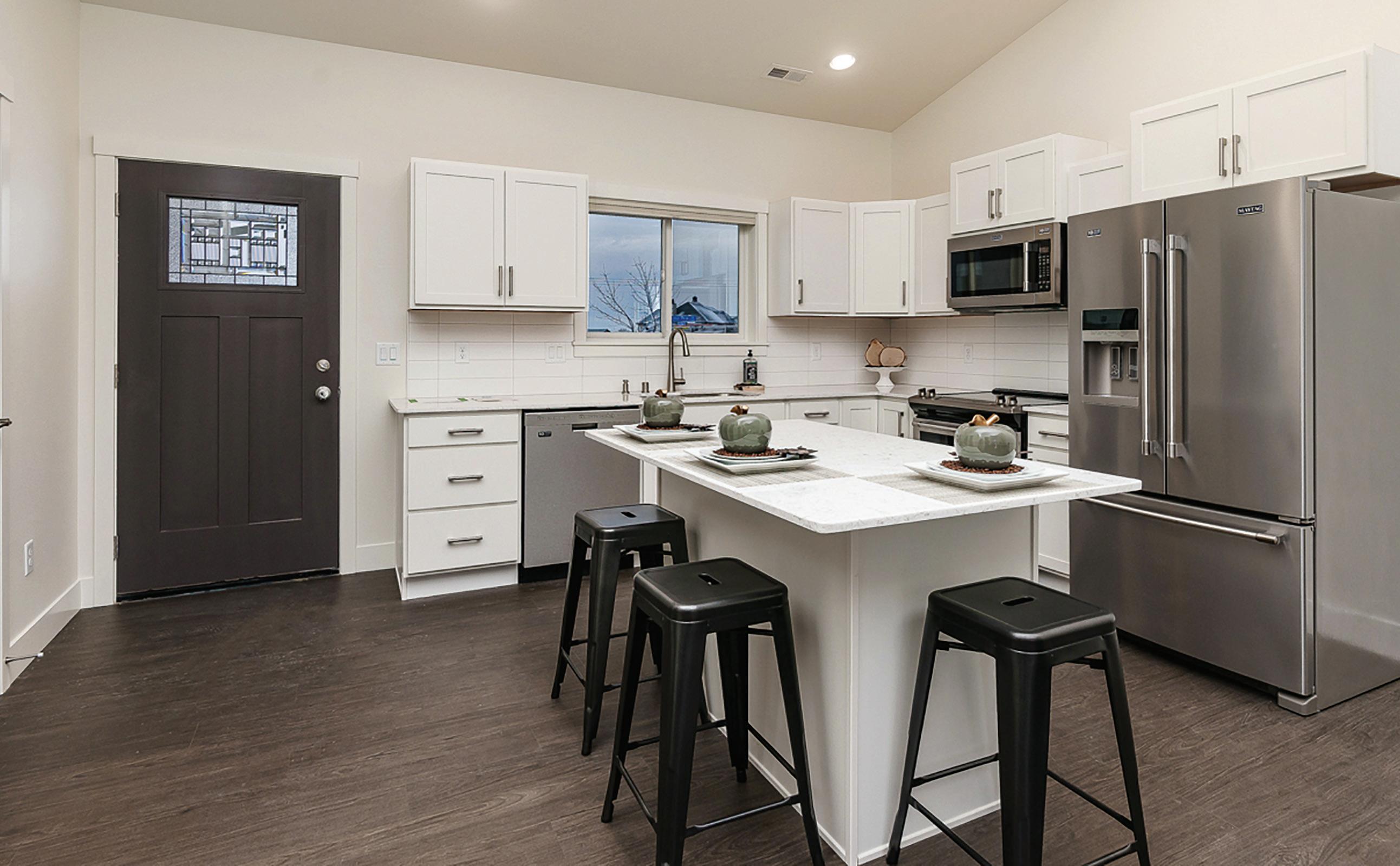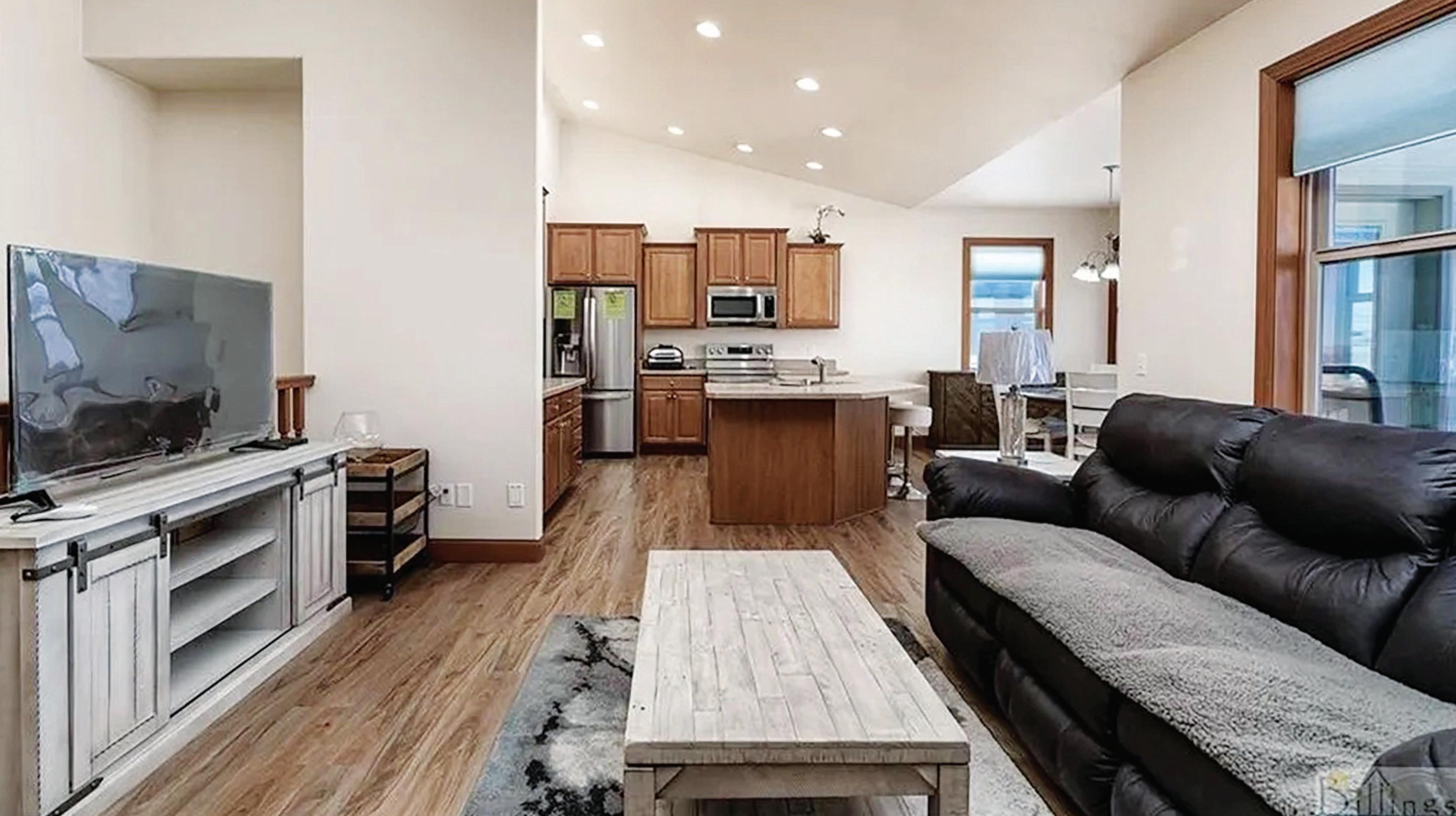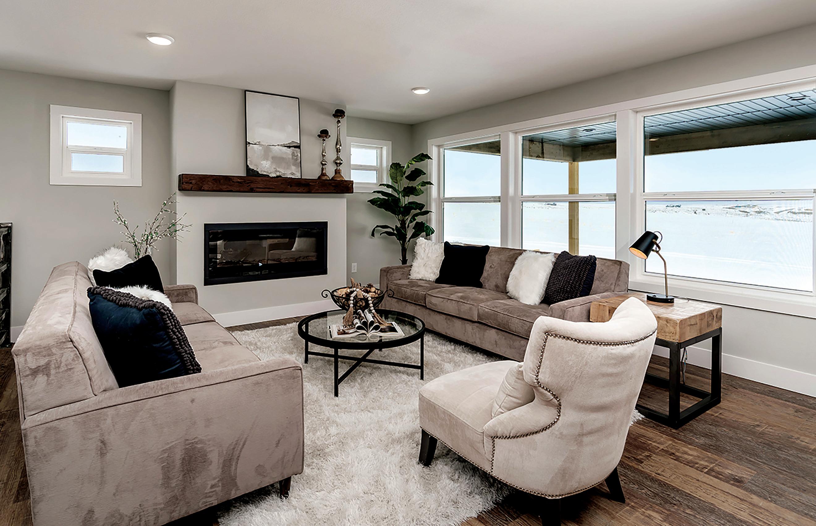 5137 PRYOR MOUNTAIN VIEW BILLINGS, MT • $565,000 Amazing attention to detail! Chic Brown Builders’ Parade home in Black Rock Estates! 3’ entry doors lead into 4616 SF of sophisticated, contemporary styling. 5 beds, 3.5 baths. Bright, open concept main living area w/ 12 ft. vaulted ceilings, engineered hardwood floors, recessed lights & gas FP. Kitchen w/ luxurious quartz counters, acrylic cabinets, Bosch appliances, 10 ft island w/prep sink & lots of storage.