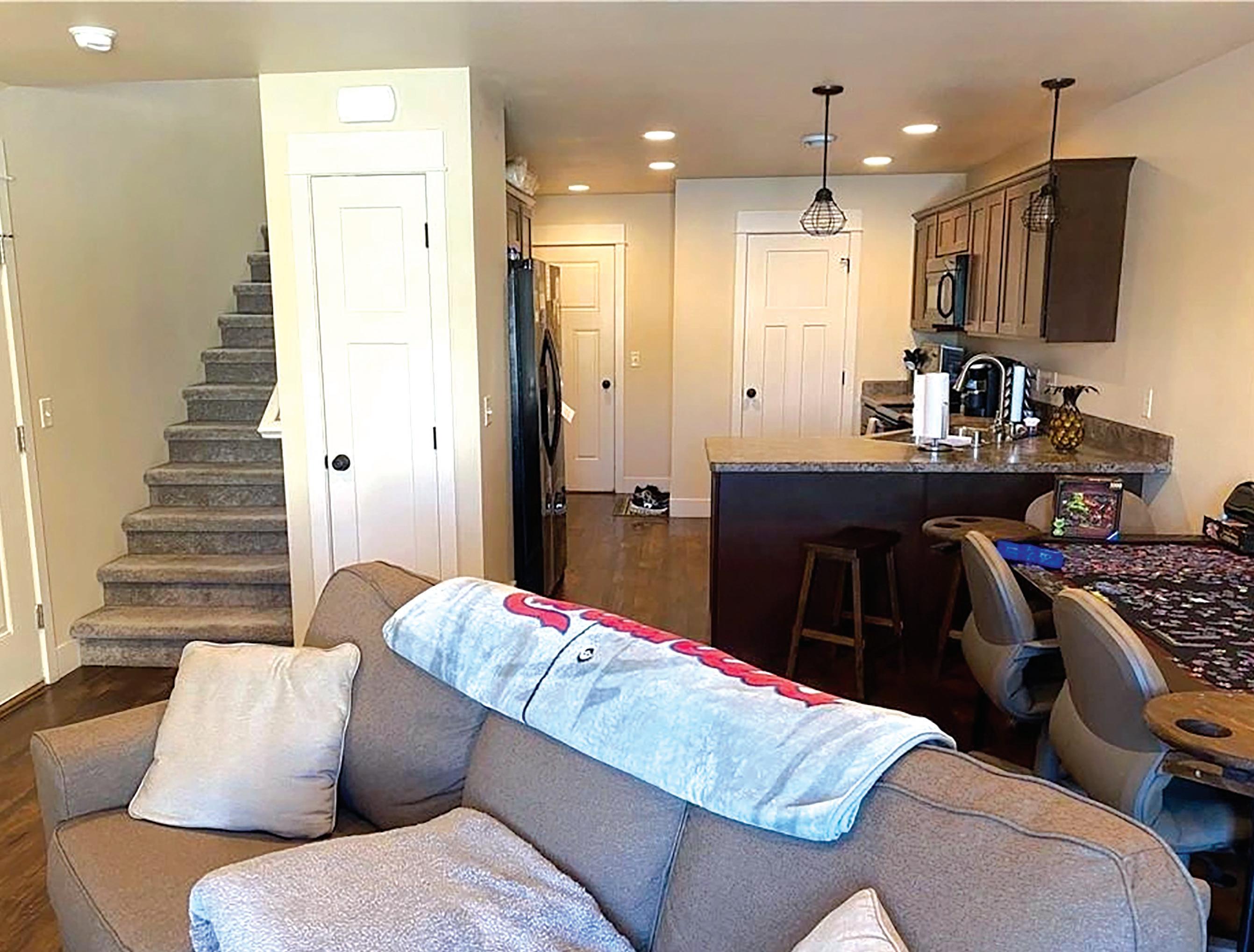 & built-in desk. Dining w/patio door. Lg family rm w/gas F/P & add’l door w/access to patio. MF laundry, next to half bth w/ext door. Master w/bath & walk-in closet. Lower: 3rd family rm/bonus space, w/4th bed & bath. Oversized 3-car gar. Helical peering foundation system installed during construction. Owned water softener & R/O to kitch sink & refrigerator. Community water sys $75/mon. 2021 updates: new paint, new roof, new fencing. 26 FELDSPAR WAY • BILLINGS, MT • $579,900
