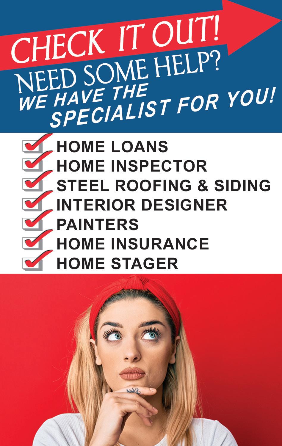 SPECIALISTS IN THEIR FIELDS! The Weekly Real Estate Portfolio is published every Thursday for the Billings Association of REALTORS®. Over 10,000 copies are distributed Free throughout Yellowstone County and the surrounding area. Neither the listing broker nor the publisher will be responsible or liable for misprints, misinformation, typographical errors, etc. The publisher reserves the right to refuse any advertising deemed not to be in the best interest of the publication. Real estate listing space is available to members of the Billings Association of REALTORS® and real estate agents. Published For: Billings Association of REALTORS®, 2021 Overland Avenue, Billings, Montana, 59102, 406-248-7145. Produced and Distributed by: RIM Advertising, Inc., 2048 Overland Ave., Suite 201, Billings, Montana, 59102, 406-656-0608. Correction/addition policy: All ad corrections/additions must be in writing, and submitted no later than 2pm on Wednesday to guarantee posting. Otherwise, the Billings Association of REALTORS® and RIM Advertising, Inc. take NO responsibility for errors or omissions. Materials can be emailed to rim2@montana.net. RE AL E S TATEPortfolio Portfolio weekly PG. 18 www.BillingsRealEstate.org PAINTING SPECIALISTS b.borich@yahoo.com INSURANCE SPECIALIST ARNIELLE ARNIELLE INSURANCE AGENCY 1320 28th Street West • Billings, MT 59102 BUSINESS 406•652•4180 • www.darnielle.com INSPECTION SPECIALISTS Mike@MontanaInfrared.com 406.690.2263 www.RCHomeDesign.com INTERIOR DESIGN SPECIALIST HOME LOAN SPECIALIST www.billingsfcu.org HOME INSURANCE SPECIALIST kj@fauthagency.com STEEL SIDING & ROOFING SPECIALIST 406-568-2500 HOME INSURANCE SPECIALISTS agentjaycochran.com