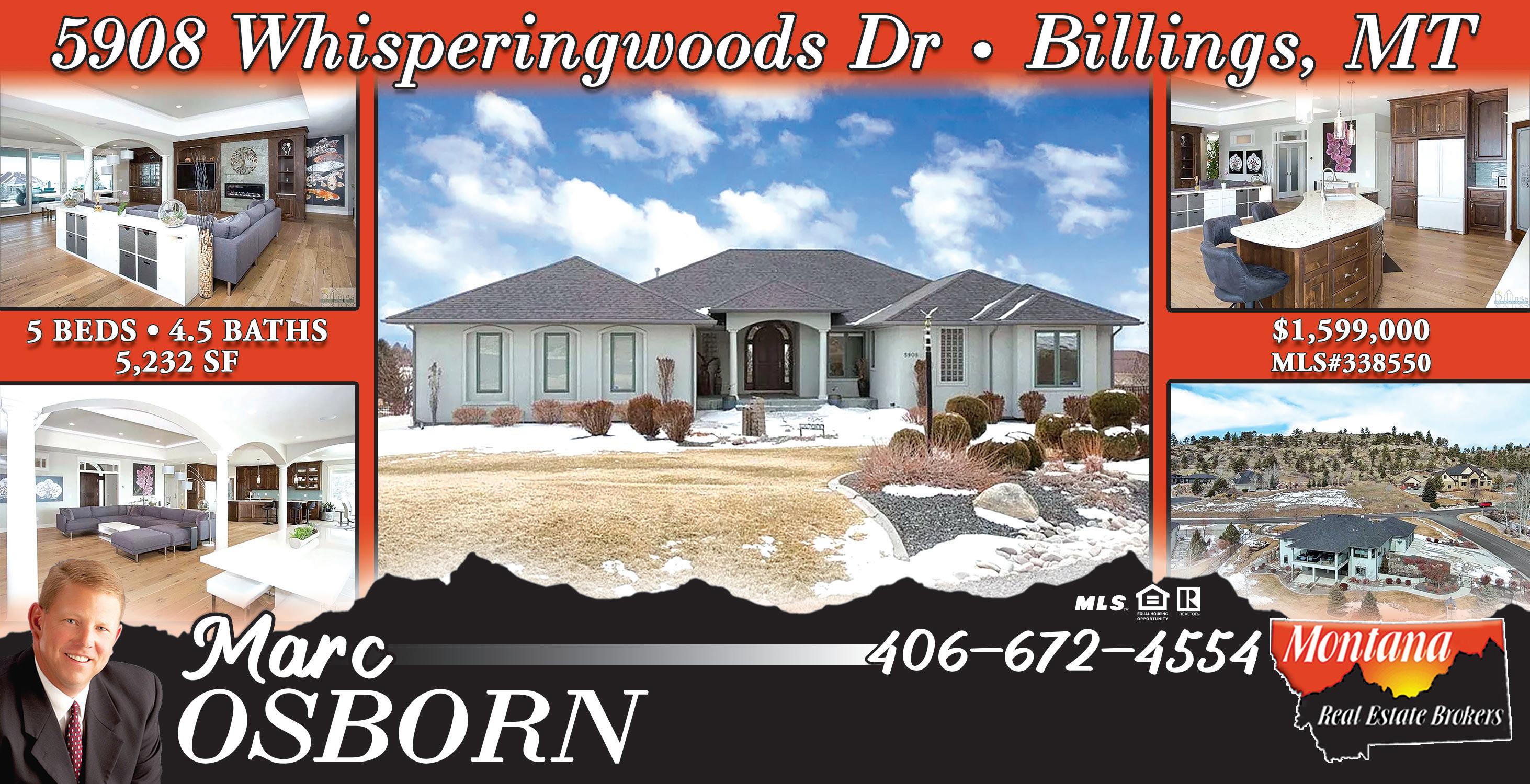 POSTED TO OUR WEB SITE, FACEBLOOK PAGES & INSTAGRAM PAGE! CENTER SECTION FREE OPEN HOUSE LISTINGS! MAPPED ONLINE - Google™ MAPS FREE ES TE Portfolio Portfolio HAPPY EASTER! HOP INTO A NEW HOME! weekly TO VIEW MORE ON THESE HOMES, SEE PAGES 10-11 PUBLICATION OWNED BY: THE BILLINGS ASSOCIATION OF REALTORS® DESIGNED & PRODUCED BY: RIM ADVERTISING, INC. • 406-656-0608 • WWW.RIMADVERTISING.COM www.BillingsRealEstate.org www.instagram.com/rimadvertisingmt www.Facebook.com/WeeklyRealEstatePortfolio www.Facebook.com/groups/montanaforsale COMMERCIAL LISTINGS: www.MontanaCommercialRealEstate.com FARM & RANCH LISTINGS: www.MontanaFarmsAndRanches.com RESOURCE GUIDE: OPEN HOUSES .... p 10-12 LOTS & LAND p 13 SPECIALISTS p 18 NEW LISTINGS.......... p 19 APRIL 6 TH thru 12 TH , 2023 VOL. 31 - NO. 14 www.DunnDeal.us www.DunnDeal.us Chris@DunnDeal.us MarcOsbornRealEstate@gmail.com www.OsbornToBuyAndSell.com