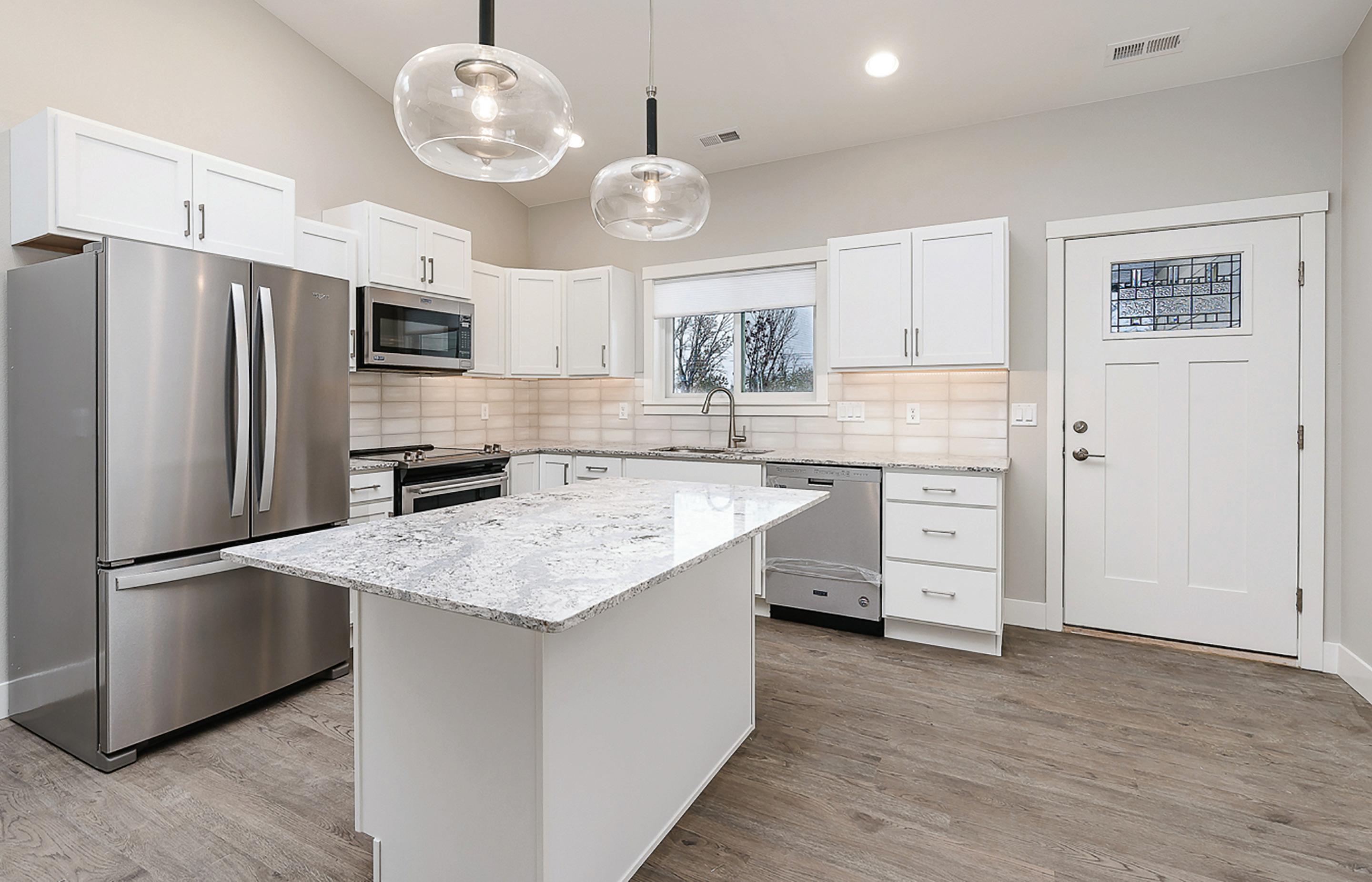 Kitchens boast Quartz counter tops, Stainless Steel appliances, under cabinet lighting, tile backsplash & pantry. LVP flooring in entry, kitch, dining & living room. Carpeted, All windows with blinds installed. 2x6 walls w/Rockwool demising insulation between units for sound barrier. Private covered front & back patio area. Anderson Windows. Hardi Siding. Dbl att. insulated/sheet rocked garage. HOA Fee of $175 /month includes Lawn, Snow, Water & Exterior Insurance.