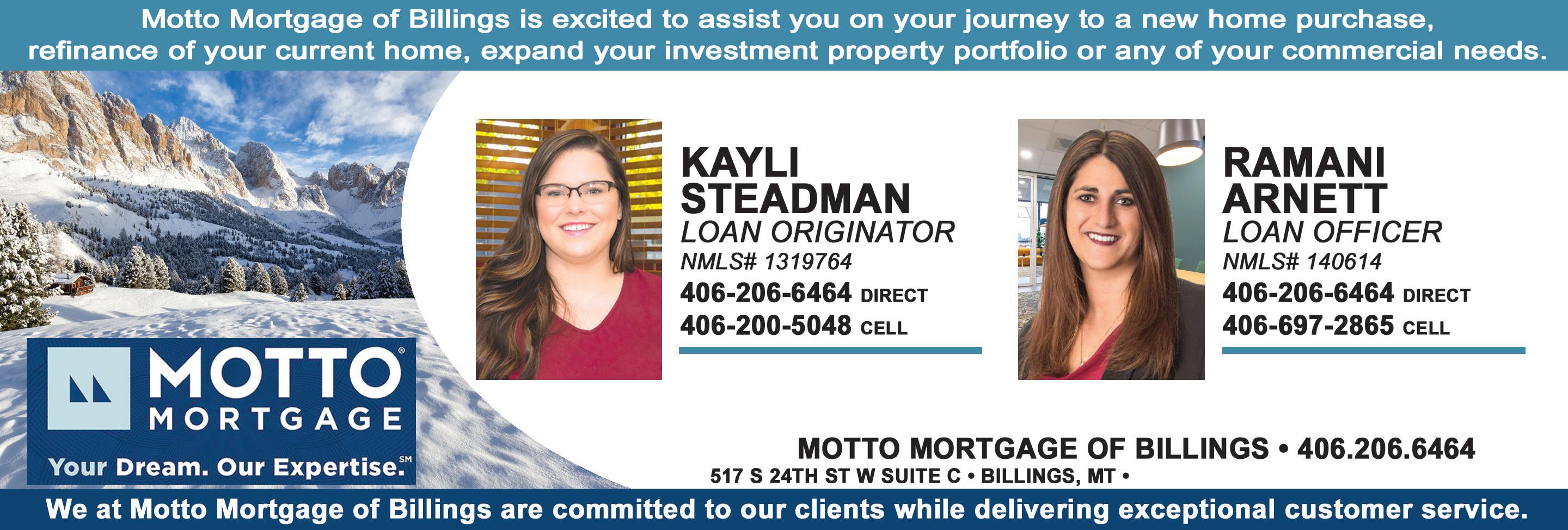 PG. 7 RE AL E S TATEPortfolio weekly www.BillingsRealEstate.org CHRIS ACKERMAN PRODUCING MORTGAGE BRANCH MANAGER NMLS 450337 406-860-7212 DIRECT cackerman@houseloan.com www.AckermanHouseLoans.com SHAWNA HOUSE SENIOR LOAN OFFICER NMLS 1850310 406-208-7643 DIRECT shouse@houseloan.com www.ShawnaHouse.com AUDREY KIMMET SENIOR LOAN OFFICER NMLS 473277 406-794-1057 DIRECT akimmet@houseloan.com www.AKHouseLoans.com DEBBIE KAY RADEN SENIOR LOAN OFFICER NMLS 252926 406-591-4309 DIRECT draden@houseloan.com www.DebbieKayRaden.com SARA MAINS SENIOR LOAN OFFICER NMLS 707785 406-850-8609 DIRECT smains@houseloan.com www.SaraMainsLoans.com Cornerstone Home Lending, a Division of Cornerstone Capital Bank, SSB. Cornerstone Capital Bank, SSB. Member FDIC | NMLS ID# 2258 | Not a commitment to lend. Borrower must meet qualification criteria.