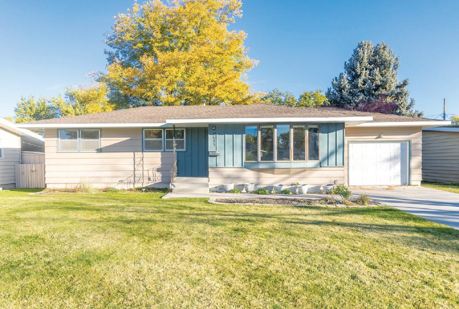PG. 17RE AL E S TATEPortfolio weeklyPortfolio www.BillingsRealEstate.org 13375 MELANIE LANE • MOLT, MT If your Montana Dream Home includes such features as roughly 20 acres, privacy, views, sustainable living, mindful use of space, a large shop, and room to expand- welcome home. You have found all that and more in this single owner log home just 20 minutes from both Laurel or the Billings West end shopping and entertainment areas. $730,000 | MLS# 333314 • MIKE LESLIE 406-860-0262 2525 VISTA LOOP DRIVE • BILLINGS, MT Welcome home to Big Sky State’s finest views. This home rests on rolling hills 10 minutes west of Billings Westend, once you are here you will feel miles away! The main floor hosts an amazing layout with huge island bar and separate gathering spaces. Southwest facing deck boasts unobstructed views of the Beartooth and Pryor mountain ranges. $629,900 | MLS# 335664 • LINDSAY VANDERSLOOT 406-850-5225 www.CBtheBrokers.com 114 SHEPHERD ACTON ROAD ACTON, MT 20 ACRES NORTH OF BILLINGS! A quick 20 minute drive takes you to Billings heights or west end. This thoughtfully laid out home offers tons of south facing light. Massive Shop is roughly 40x80’, includes loft storage and attached workshop and/or reloading room in addition to the detached two car garage. Clear days offer mountain views! $550,000 | MLS# 334892 MEGAN VADEN 406-696-8312 3D TOUR: https://tinyurl.com/f4fanbr6 3D TOUR: https://tinyurl.com/3fhdkh93 4342 RANGEVIEW DRIVE BILLINGS, MT Magnificent custom Jeff Junkert home located in the heart of Rimrock West Estates. Gorgeous hardwood/ tiled flooring, trey ceilings, beautiful crown molding and marvelous natural light throughout. The kitchen, truly the heart of the home, features outstanding granite countertops, stainless steel appliances, gas range and cherry cabinets. $780,000 | MLS# 335636 RACHEL COURT 406-794-9915 P R I C E D R O P 327 CLARK AVENUE BILLINGS, MT CLARK AVENUE COTTAGE! Gorgeous Cottage Tudor located on Clark Avenue--Billings’ official scenic route, where many homes have been placed on the National Register of Historic homes. The Back yard is a private sanctuary with outstanding shade and mature landscaping. The home’s doors are made of solid wood, many with crystal art deco knobs or stained glass. $545,000 | MLS# 332056 RACHEL COURT 406-794-9915 3D TOUR: https://tinyurl.com/3mj9kubp 3919 HIGH TRAIL RD • BILLINGS, MT Room to relax and enjoy the quiet privacy of your own space just minutes outside of town. 4 Bed, 3.5 Bath home set in very scenic & spacious with 2+/- acres & options to expand. Recently undergone a nearly complete renovation by local high quality custom home builder this classic open floor plan rancher provides solid craftsmanship with a classic rustic Montana touch. $549,000 | MLS# 334970 BRAD WITTEN 406-698-3829 P R I C E D R O P 3D TOUR: https://tinyurl.com/49cf4ydf 5915 SOUTHRIDGE RD BILLINGS, MT Seductive & meticulously detailed, this custom built, 1-owner home is a rare find. This unique property sits on 10 acres with ponderosa pines, fruit trees and mature landscaping. Spaces are crafted by a refined floor-plan to include a magnificent floor-toceiling fireplace, gorgeous wooden beams, vaulted ceilings and stunning maple wood flooring. $675,000 | MLS# 331284 RACHEL COURT 406-794-9915 P R I C E D R O P 162 ANNANDALE RD • BILLINGS, MT Get that BRAND NEW home with a warranty on the 14th hole of the Lake Hills Golf Course!! Bob Pentecost Construction’s Dearborn Floor Plan in the beautiful Lake Hills Subdivision. Side split 3 bedroom 2 bath with 3 car attached garage and vaulted ceilings. Covered front porch along with a covered back patio. Master Suite with dual sinks & walk-in closet. Framed, insulated but unfinished lower level with potential family room, 1 bedroom & bath. Underground Sprinklers & Landscaping included! $539,900 | MLS# 331498 BRIAN TERRY 406-591-3217 3D TOUR: https://tinyurl.com/yed77uj3 NEW LISTING! 3D TOUR: https://tinyurl.com/3b3mkur2 OPEN SUNDAY, OCT 23RD • 11:00-1:00 NEW LISTING!