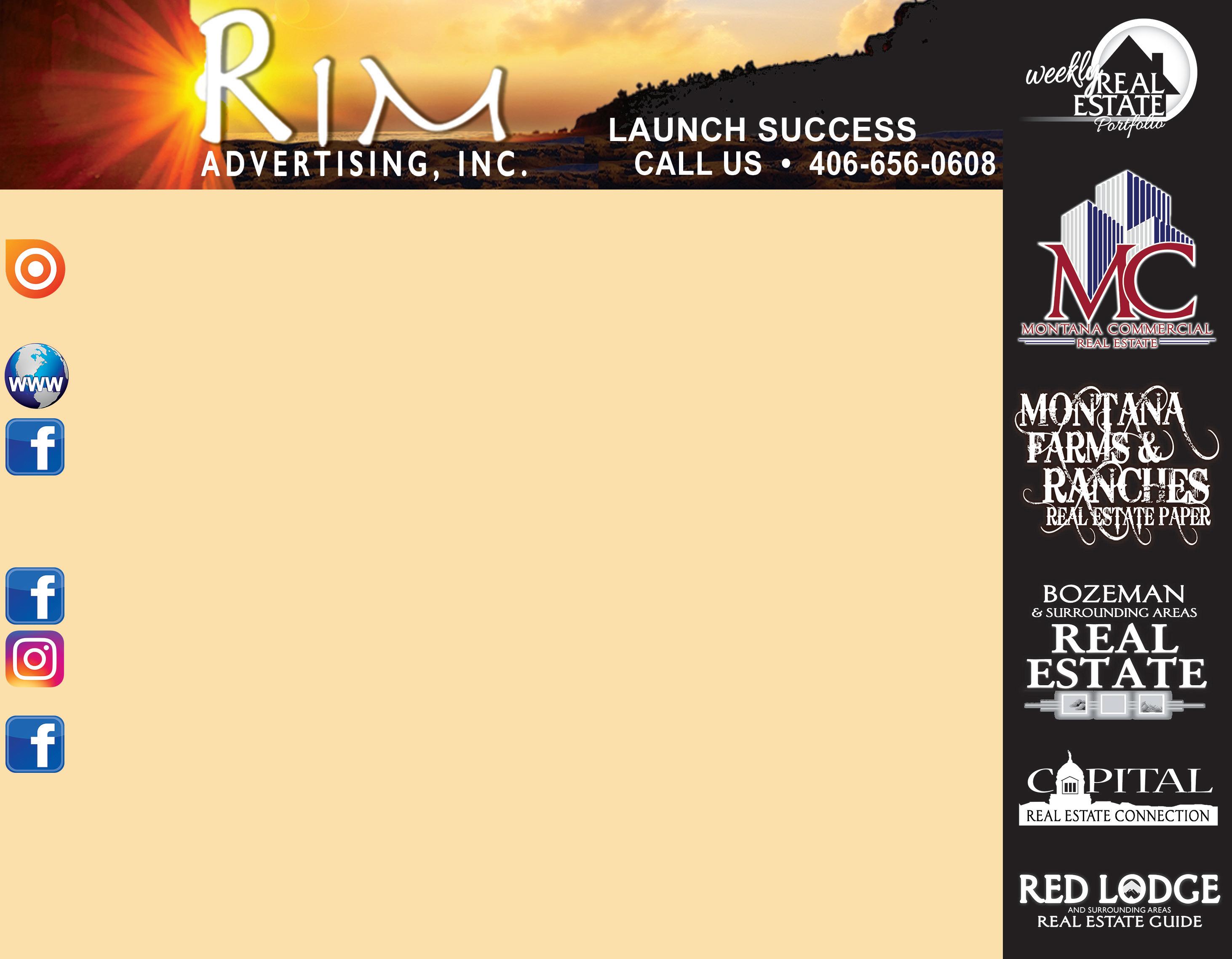 SPECIALISTS IN THEIR FIELDS! The Weekly Real Estate Portfolio is published every Thursday for the Billings Association of REALTORS®. Over 10,000 copies are distributed Free throughout Yellowstone County and the surrounding area. Neither the listing broker nor the publisher will be responsible or liable for misprints, misinformation, typographical errors, etc. The publisher reserves the right to refuse any advertising deemed not to be in the best interest of the publication. Real estate listing space is available to members of the Billings Association of REALTORS® and real estate agents. Published For: Billings Association of REALTORS®, 2021 Overland Avenue, Billings, Montana, 59102, 406-248-7145. Produced and Distributed by: RIM Advertising, Inc., 2048 Overland Ave., Suite 201, Billings, Montana, 59102, 406-656-0608. Correction/addition policy: All ad corrections/additions must be in writing, and submitted no later than 2pm on Wednesday to guarantee posting. Otherwise, the Billings Association of REALTORS® and RIM Advertising, Inc. take NO responsibility for errors or omissions. Materials can be emailed to rim2@montana.net. RE AL E S TATEPortfolio weeklyPortfolioPG. 22 www.BillingsRealEstate.org PAINTING SPECIALISTS b.borich@yahoo.com HOME INSURANCE SPECIALIST kj@fauthagency.com INSURANCE SPECIALIST DARNIELLE DARNIELLE INSURANCE AGENCY 1320 28th Street West • Billings, MT 59102 • AUTO • HOME • BUSINESS • 406•652•4180 • www.darnielle.com INSPECTION SPECIALISTS Mike@MontanaInfrared.com INTERIOR DESIGN SPECIALIST 406.690.2263 www.RCHomeDesign.com INSPECTION SPECIALISTS Jacob.Tuka@pillartopost.com https:// Tuka Team. P illar To P ost .com STEEL SIDING & ROOFING SPECIALIST JOSH@VALLEYSTEELLLC.COM • WWW.VALLEYSTEELLLC.COM HOME LOAN SPECIALIST www.billingsfcu.org HOME INSURANCE SPECIALISTS agentjaycochran.com