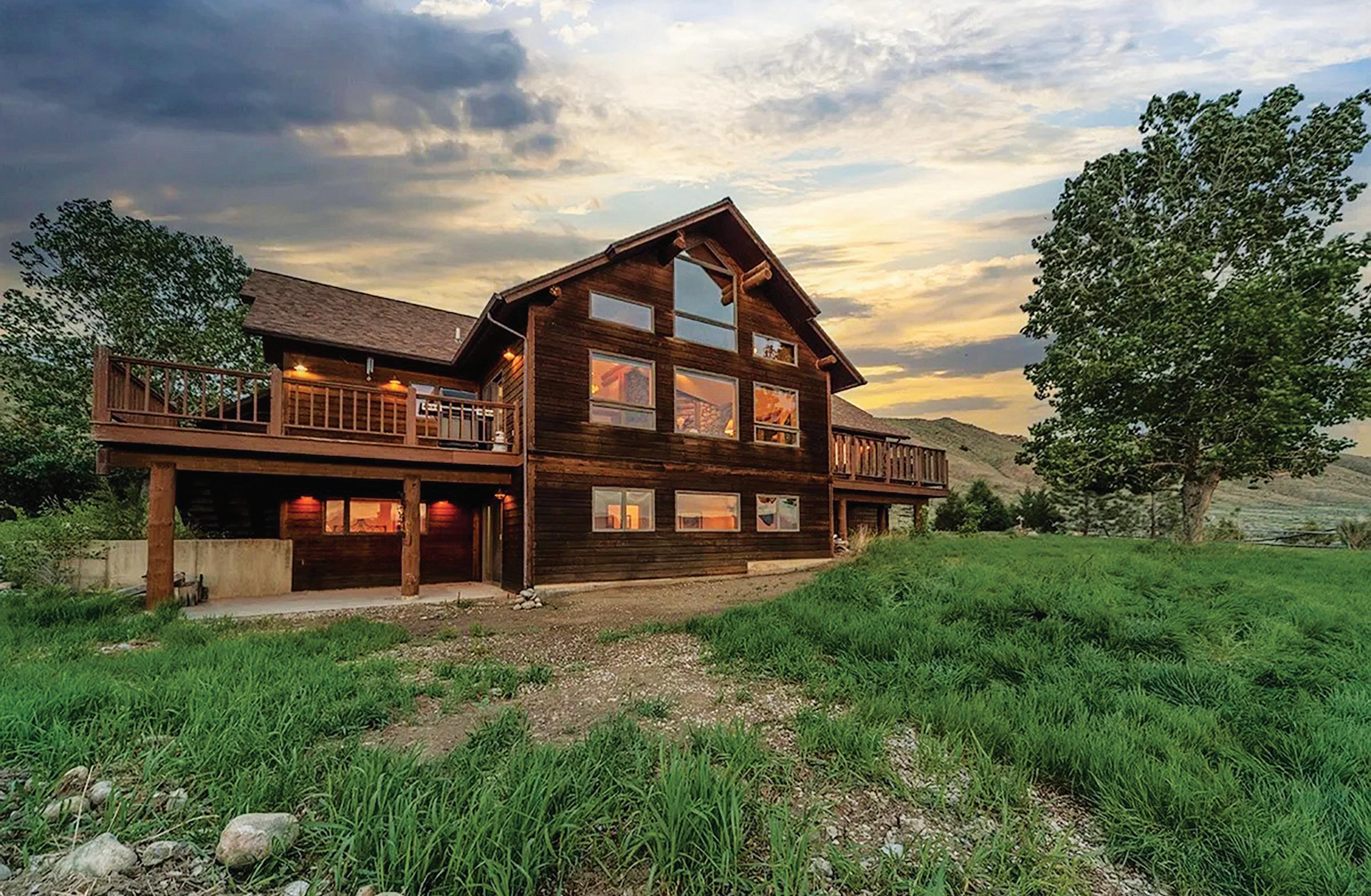 OVER 3,100 SF. OF 1 LEVEL LIVING ON ALMOST 11 ACRES of irrigated ground, perfect pastures yield great hay 3 cuttings per year. Wonderful private setting, minutes to Eagle Rock Golf Course. Acreage property w/ all of the outbuildings that include equipment shop area, horse tack storage, loafing shed, barn. Very limited covenants allow for animals, ie horses, cows, etc. No commercial feedlots of any kind, fully fenced. Home is amazing with 2 large living rooms, fireplaces, open remodeled kitchen, large dining areas, including breakfast bar space, new flooring, master affords access to the large sunroom that hosts an in deck hot tub and tons of storage for patio furniture, whatever you may like as it is heated, enclosed and secure. Exterior is also wired for a hot tub in case under the stars is your preference while you watch horses frolic under the moonlight. $675,000 • MLS# 338863