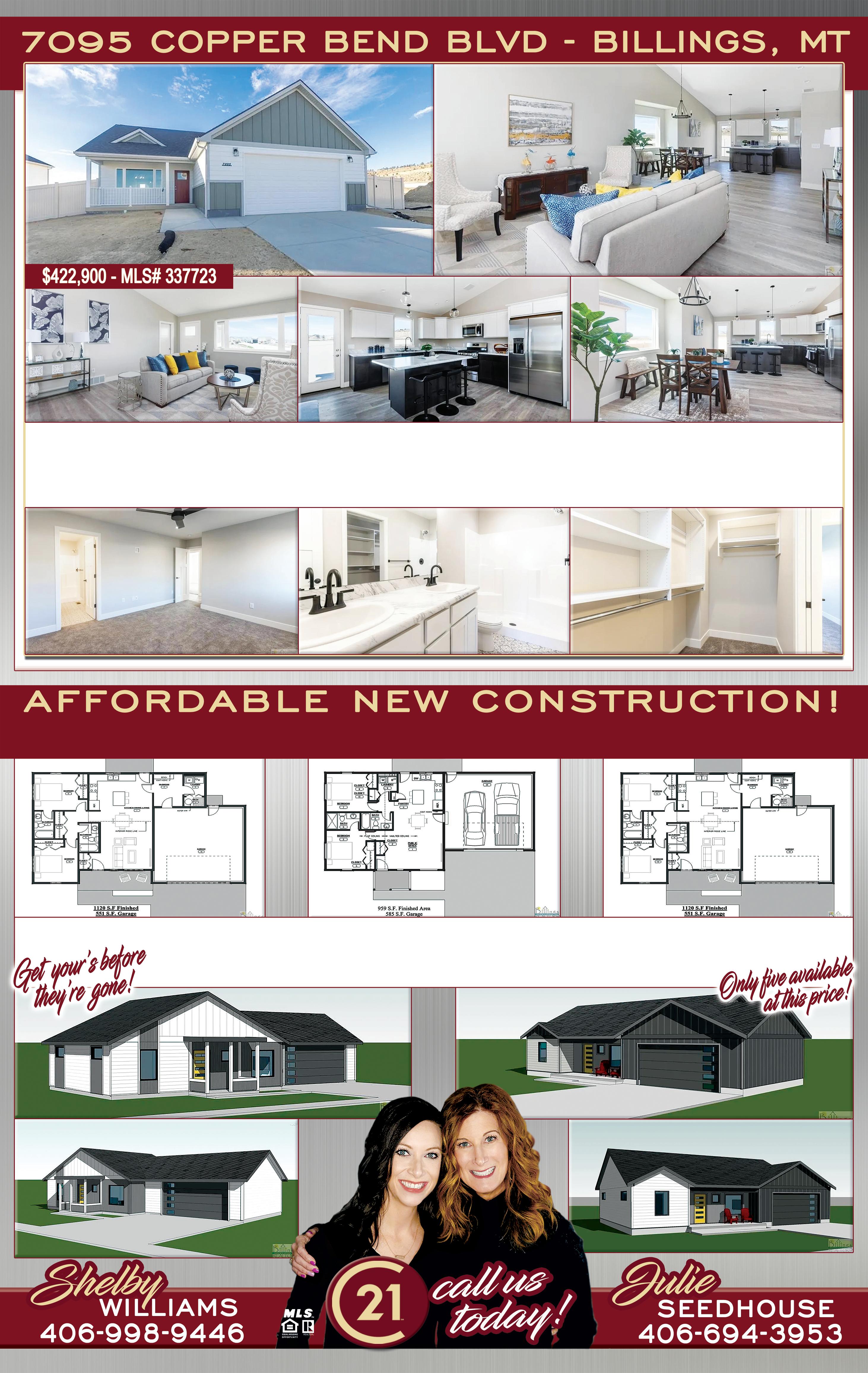 Bob Pentecost Construction is pleased to announce 2 new floor plans! AFFORDABLE new construction homes in Billings starting at $321,900.00