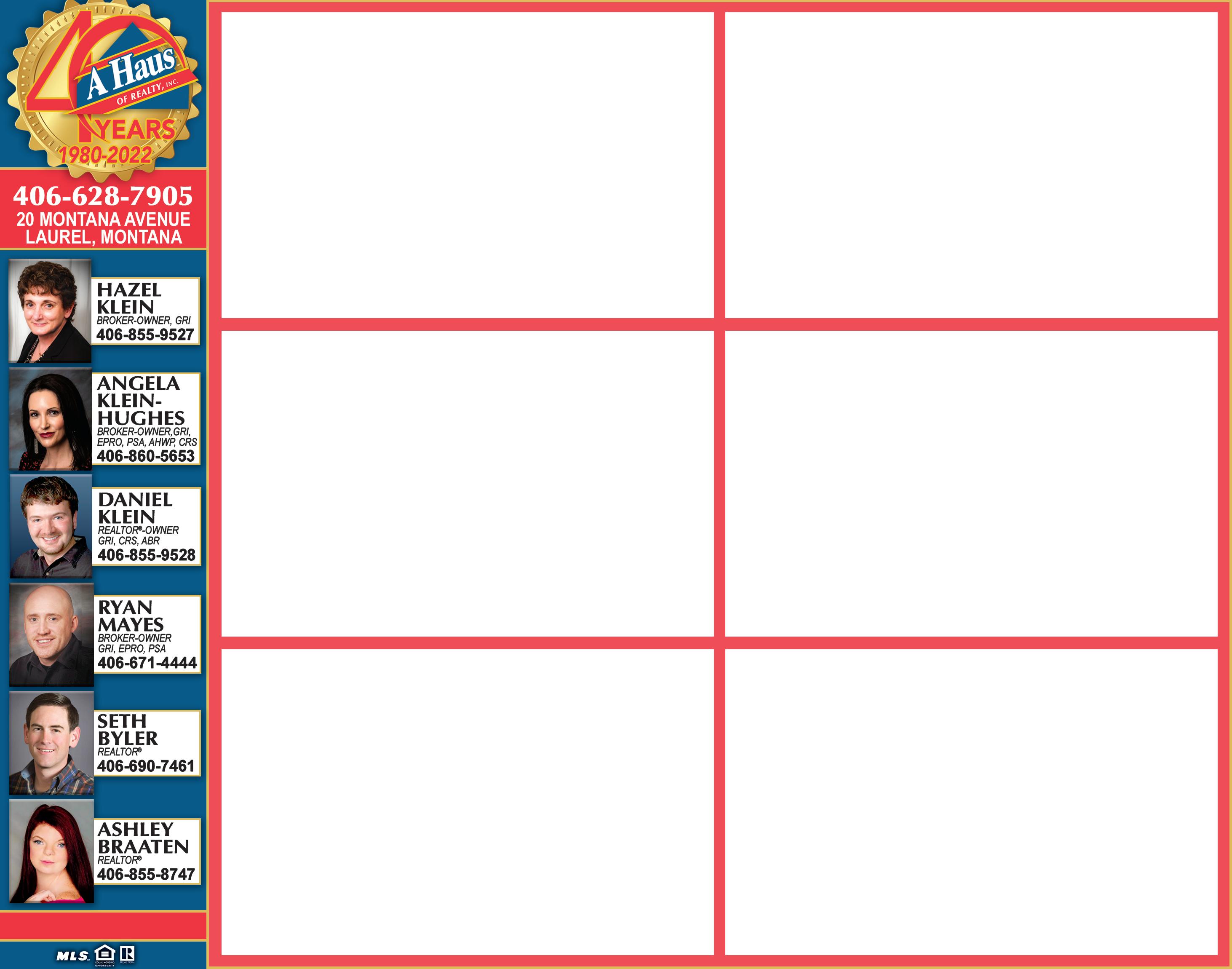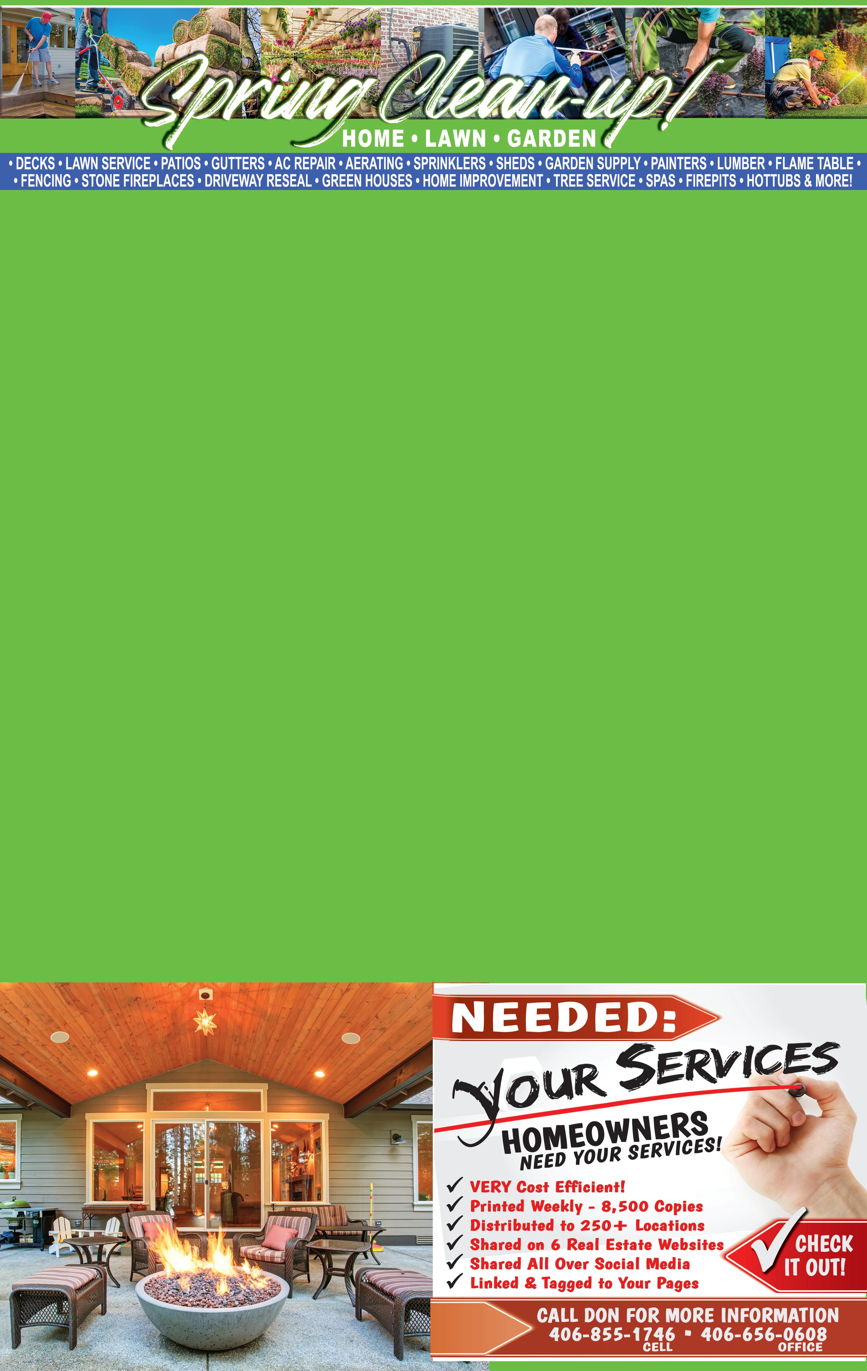 • FREE OPEN HOUSE LINE LISTINGS • https://bit.ly/3JSom8V • Open Houses listed FREE in the center section of the Weekly RE Portfolio then Mapped on-line with Google Maps & posted to Facebook each week. • Service available FREE to ALL OUR REALTORS® • Send info to JESSICA at: rim2@montana.net INFO NEEDED: Open House Address, Date & Time, Home Description, Price, MLS#, Realtor & phone, Co-Host & phone, Office. www.MontanaCommercialRealEstate.com LIKE OUR FACEBOOK PAGE! www.facebook.com/MontanaCommercialRealEstate LIKE OUR FACEBOOK GROUP! www.facebook.com/groups/montanaforsale LIKE OUR INSTAGRAM PAGE! www.instagram.com/rimadvertisingmt THE PERFECT PLACE FOR FINDING THE PERFECT COMMERCIAL LISTING! MARCH-APRIL ISSUE IS UP! CHECK OUT THE LATEST ISSUE ONLINE!