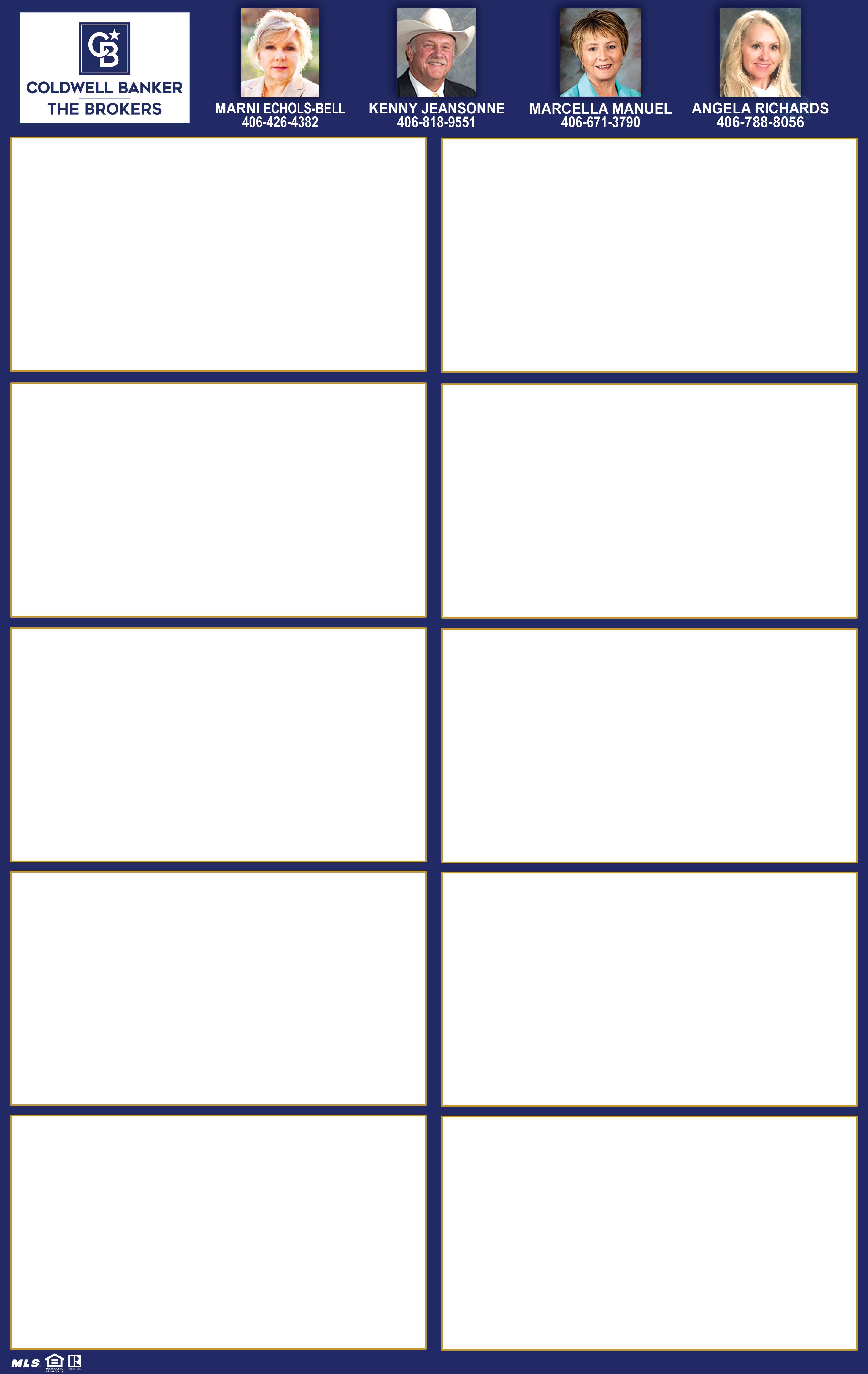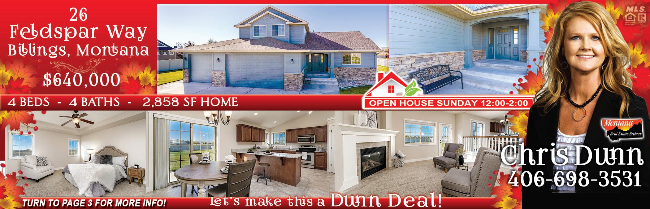 103 PAVESTONE TRAIL • BILLINGS, MT • $1,300,000 6862 COPPER RIDGE LOOP • BILLINGS, MT • $500,000 5137 PRYOR MOUNTAIN VIEW • BILLINGS, MT • $595,000 4723 WILDCAT DRIVE • BILLINGS, MT • $495,000 ONLINE VIRTUAL TOUR: https://vimeo.com/762694426 ONLINE VIRTUAL TOUR: https://vimeo.com/760322803 ONLINE VIRTUAL TOUR: https://vimeo.com/749623039 BUYERS INCENTIVE! $10,000 TOWARDS CLOSING COSTSPREPAID / DISCOUNT POINTS! OPEN HOUSE SUNDAY 12:00-2:00 26 FELDSPAR WAY • BILLINGS, MT • $640,000