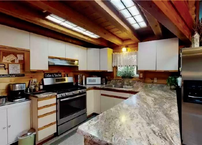 the views. Kitchen/Dining area have tile floor and patio door to relaxing deck. Master bedroom has private bath w/jetted tub. Lower level has Family room, additional bedroom, bath/ laundry combo w/garage access. New roof in 2021. Double attached tuck garage. 3,000 gallon cistern. 500 gallon propane tank is owned.