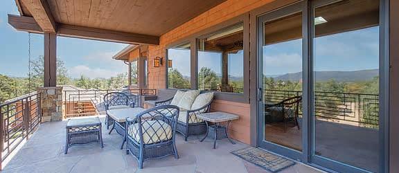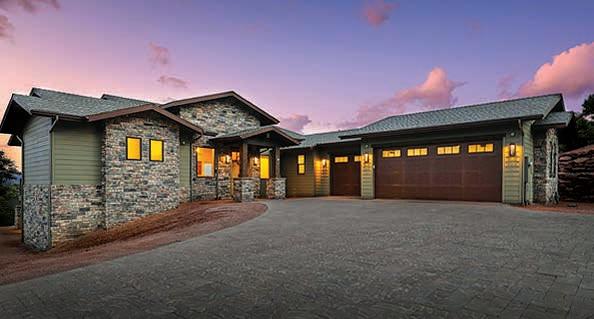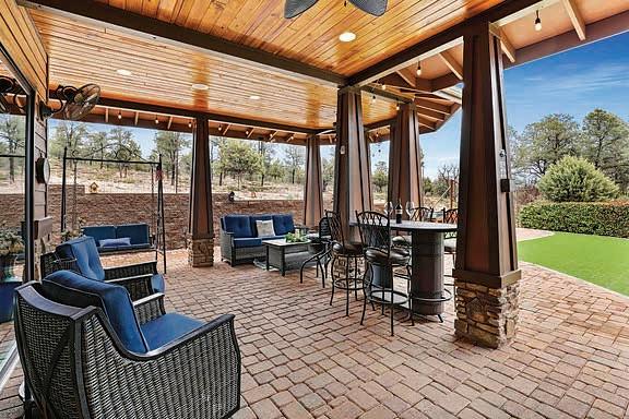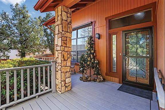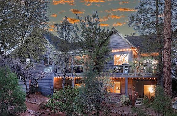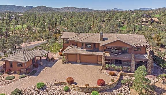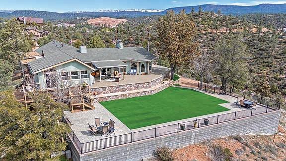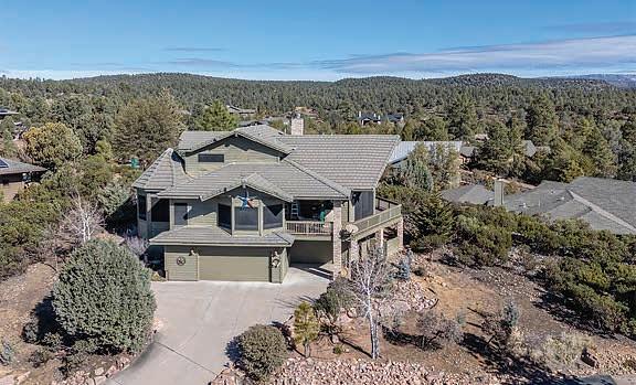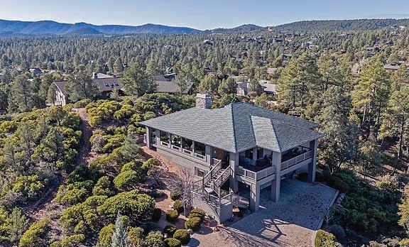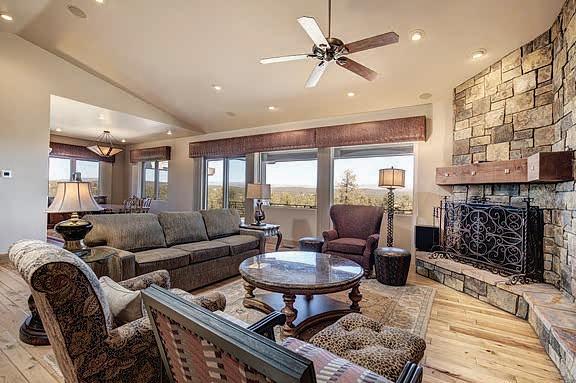 This home features commanding, panoramic mountain views of the Mogollon Rim and Diamond Point, with particular attention to detail and interesting architectural features inside and out. The front elevation combines a combination of Tuscan and Craftsman styles with a contrast of quarry stone, cedar lap wood siding & craftsman style porch posts. Sited on a spacious 1.5+acre lot, it blends natural & professional landscaping.