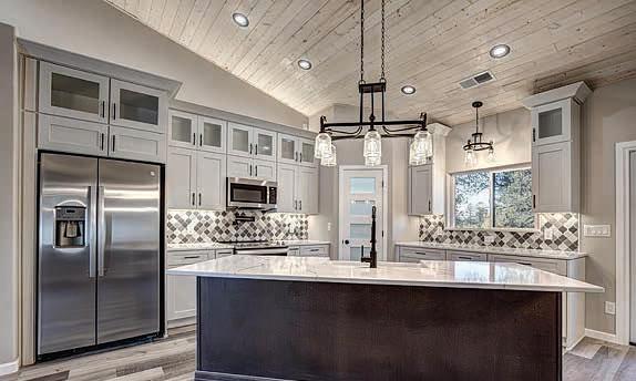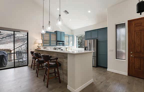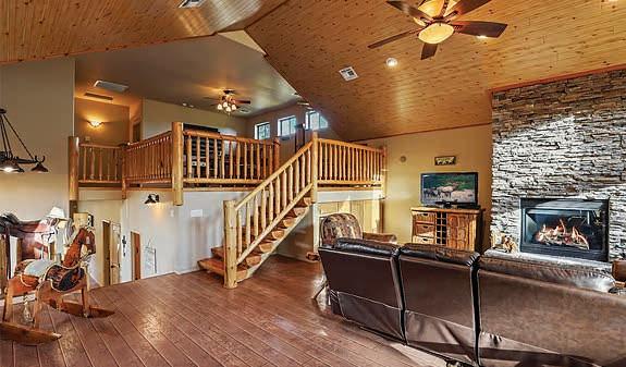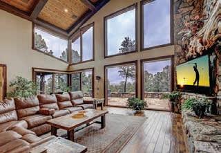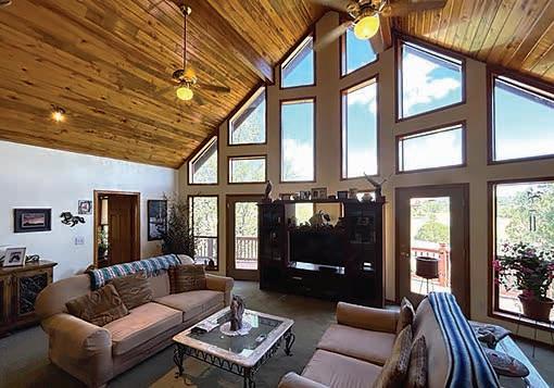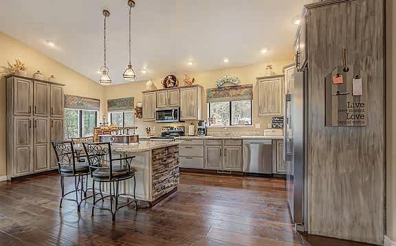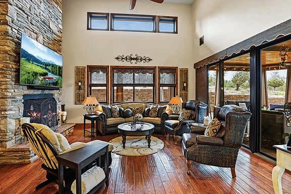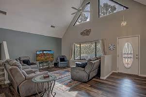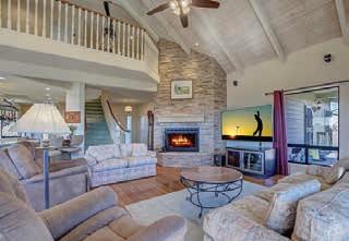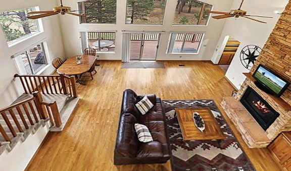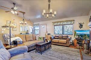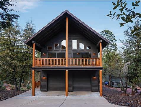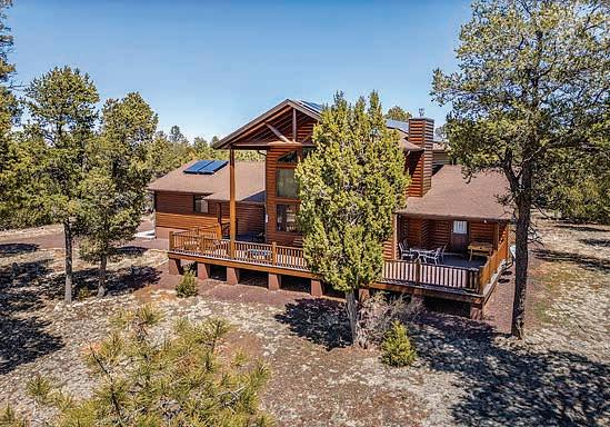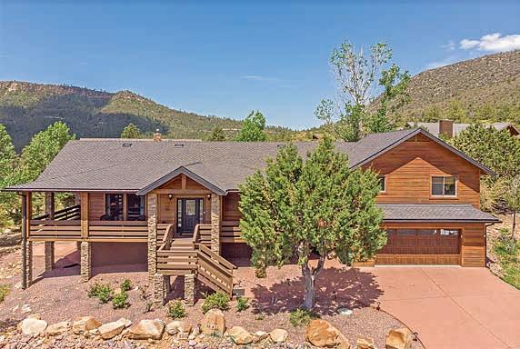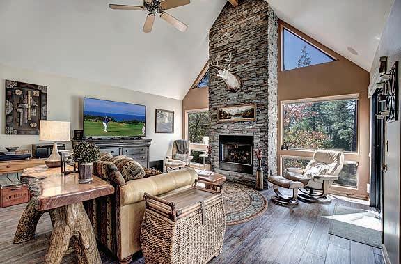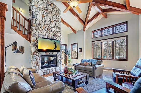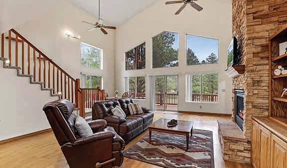 E ScarlEt BuglEr circlE BEST OF THE RIM NOMINEE for 2022 Absolutely gorgeous cabin in Chaparral Pines Golf Community! ±2540 sf, three spacious BRs, three baths, and it’s move-in ready! All main living on the lower level, a large loft area along with 2 BRs and a full bath on the 2nd. The loft is open to the living room and makes for a great family / game room. Covered decks on both the front and back, plus there’s a dog run. Borders the golf course but has plenty of privacy. $859,000 (89965)