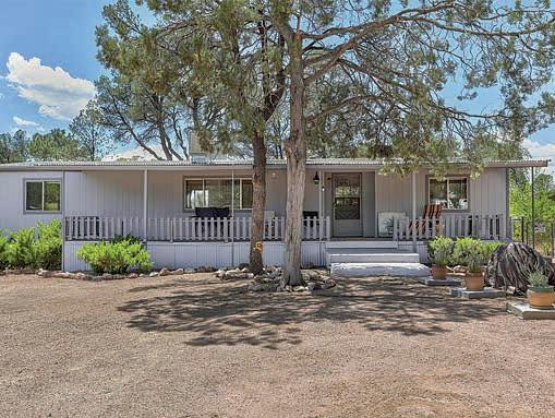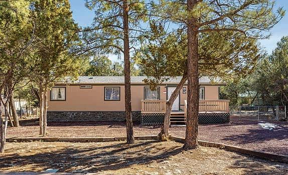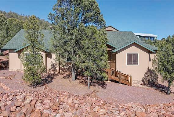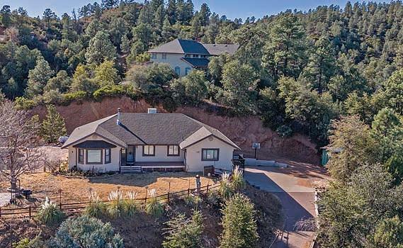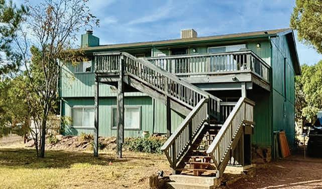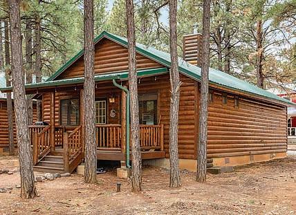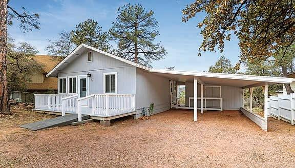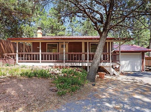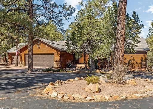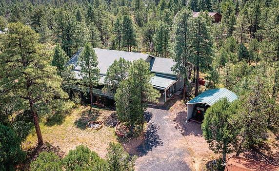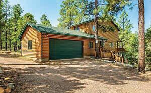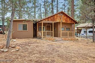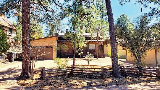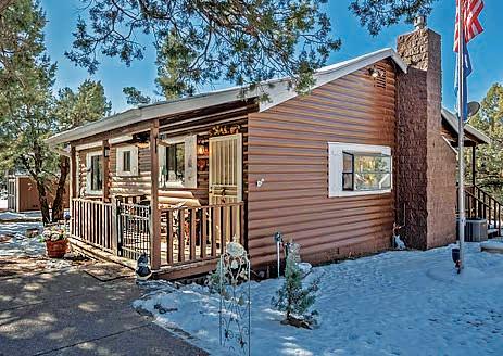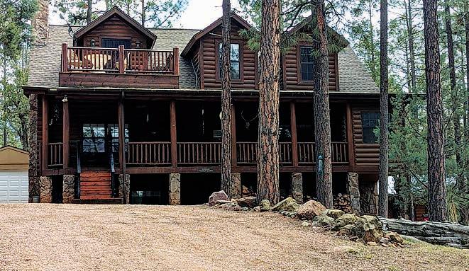 Full-log cabin, 5BRs, 3 baths, 3540 sf, detached garage, partially fenced 0.36-acre lot. Large upstairs bedroom / office combo with walk-out balcony with great views of the Mogollon Rim. Lower level with wet bar. $975,000 (89850)