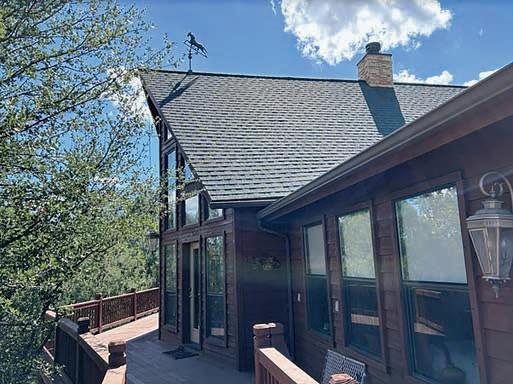 rock F/P. The allure of slate flooring enhances its rustic charm, while stained glass and numerous strategically placed windows usher in an abundance of natural light.