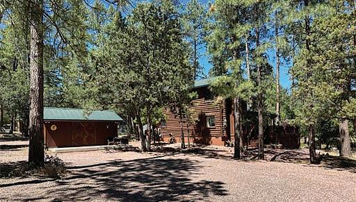 Absolutely adorable 2BR, 1½ bath, full-log cabin on a fenced (wood and chain link) double lot! Cute cabin look with knotty pine interior, vaulted knotty pine ceiling, and an upstairs BR with ½-bath and private balcony for star-gazing. There's also a BR and full bath downstairs. So much to offer for either full-time, weekender or Air BnB! There's a matching 8 x 10 log-sided shed for gardening tools, plus a 12 x 20 shed with 3 entrances, a ramp, 2 decks, and a 12 x 20 loft. Easy to finish the interior and use as a possible guest house! There's even a carport to keep the winter elements off your car. Navajo County maintains the road for easy access, and it’s very close to the Nat’l Forest with public access for miles of enjoyment. $324,900 (248865)