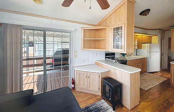 trees and mountain views. $75,000 (89649) 927 W Madera Lane: Lovely 2BR, 2 bath, 1188 sf, single-level condo, perfect for full- or part-time living. Gas fireplace in the living room, wood laminate flooring throughout,