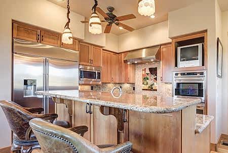 You'll find all the top finishes you would expect, including a beautiful kitchen, granite counters, a wine refrigerator and a spacious pantry. It has an open floor plan to the dining & living room, with a custom fireplace & inviting amenities. An elevator connects both levels with two bedrooms & two full baths on the lower level. The two-level floor plan is what offers you those unparalleled views and extra security.