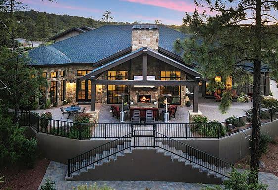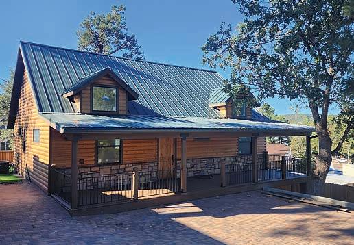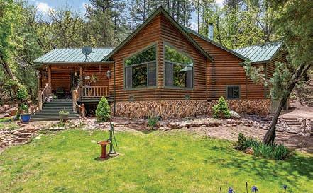 an open floor plan, and high end finishes throughout the cabin. Chalet-style windows provide stunning views of the Mogollon Rim from the greatroom, and multiple skylights bring in natural light. The main level also features sizeable rooms and a bonus space w/ sauna & safe. Office / study and loft offer additional sleeping areas for large gatherings. The primary suite has built-ins & bright windows to showcase the surrounding Nat’l Forest. On the 1st level is a spacious family / game room with a ½-bath & laundry. $825,000 (88213)
