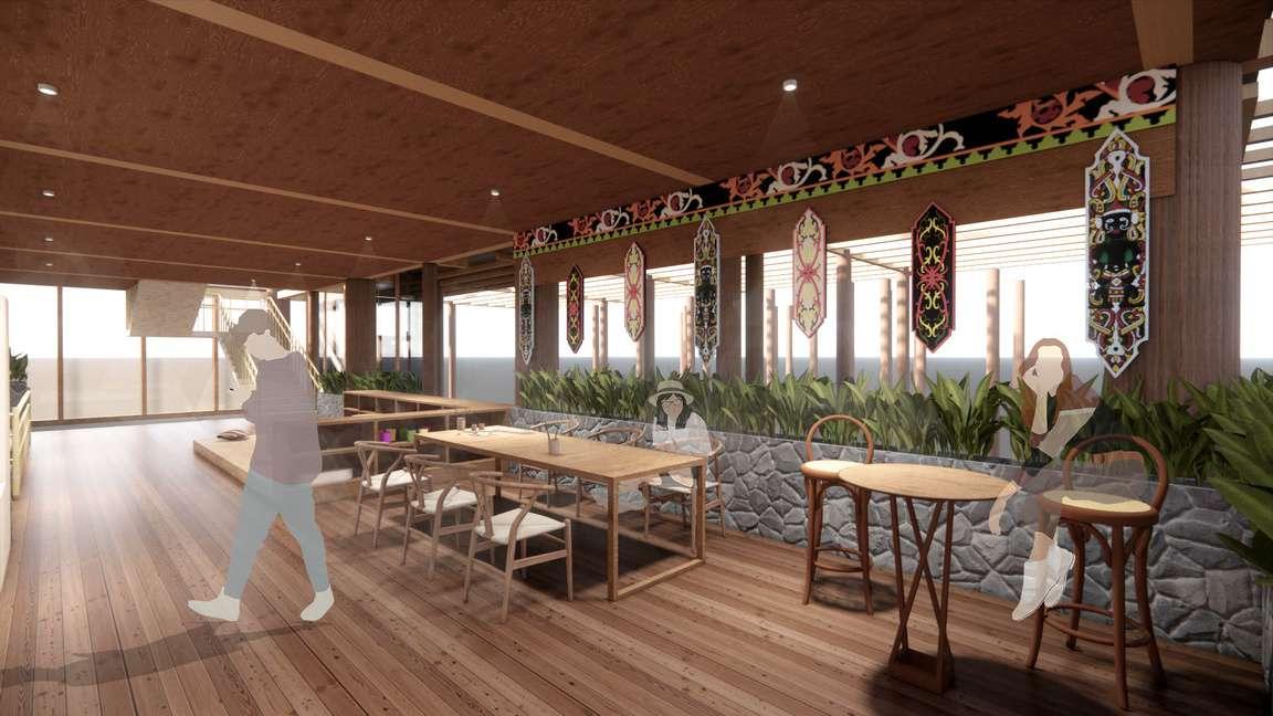 在本年度畢業設計,選了文化民宿成為設計主題。基地在於印尼加里曼丹島。除此之外,空間設 計也考慮到環境條件,維持環保的設計。