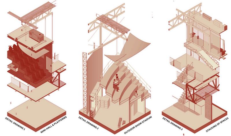 The overall programs are under the big aspect of entertainment approach. So, the proposed space will be ampitheatre, mini-hall / lecture hall, art exhibition gallery, interview area, etc. All of these programs are under the aspect of entertainment / shows/ performances.