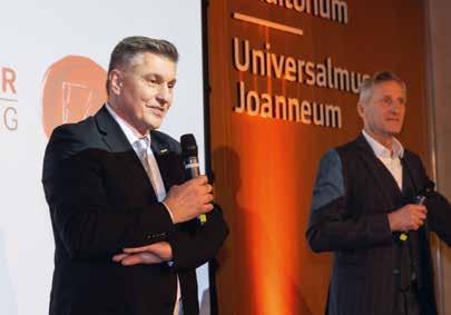 internationaler Zusammenarbeit hervor. Als Anerkennung für den Einsatz für den Wirtschaftsstandort überreichte die Wirtschaftskammer Steiermark, vertreten durch Präsident Josef Herk und Direktor Karl-Heinz Dernoscheg der Hochschulleitung eine Ehrenurkunde.